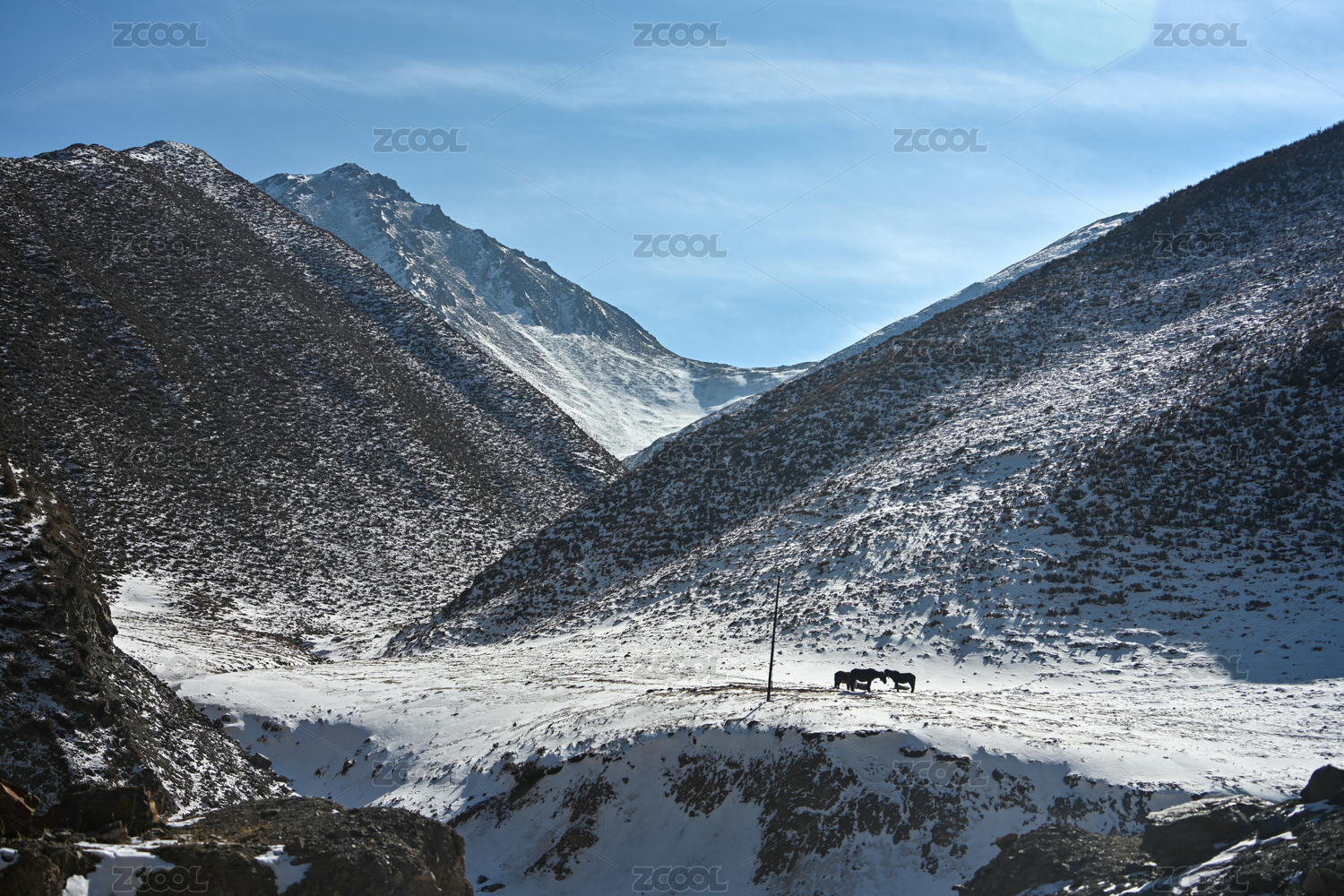 中国林拉公路米拉山垭口的雪山峡谷风光