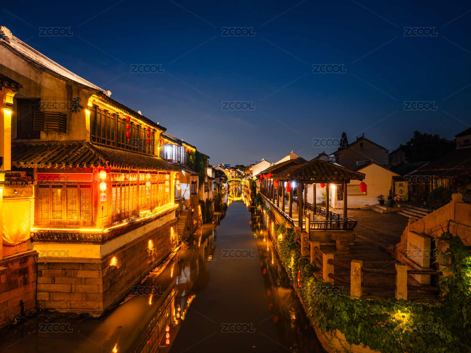 中国历史文化名城苏州七里山塘,城市夜景航