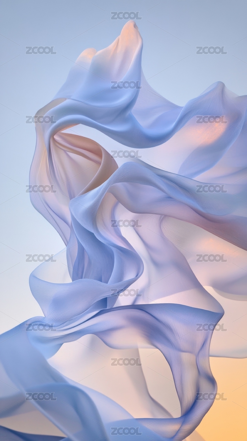 淡蓝色绸缎随风飘逸柔美如丝