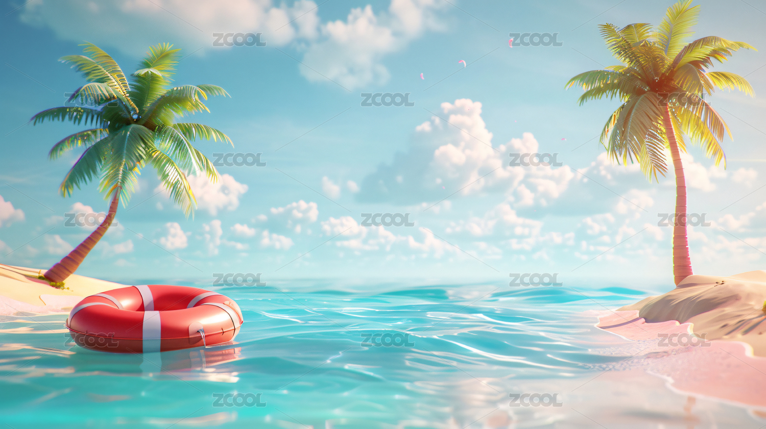 夏日清新度假风3D插画夏天海滩度假