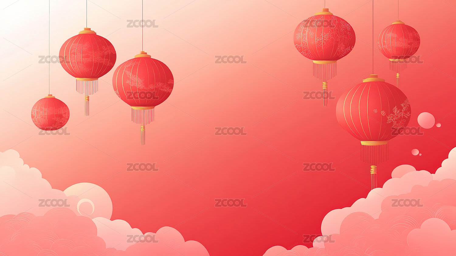 一副云朵与灯笼背景
