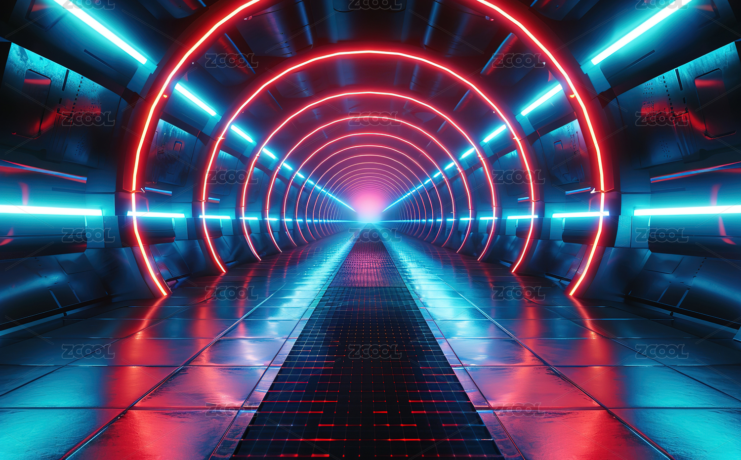 无人,三维图形,未来,发光,人造空间,AI数字艺术,建筑,插画,走廊,科学技术