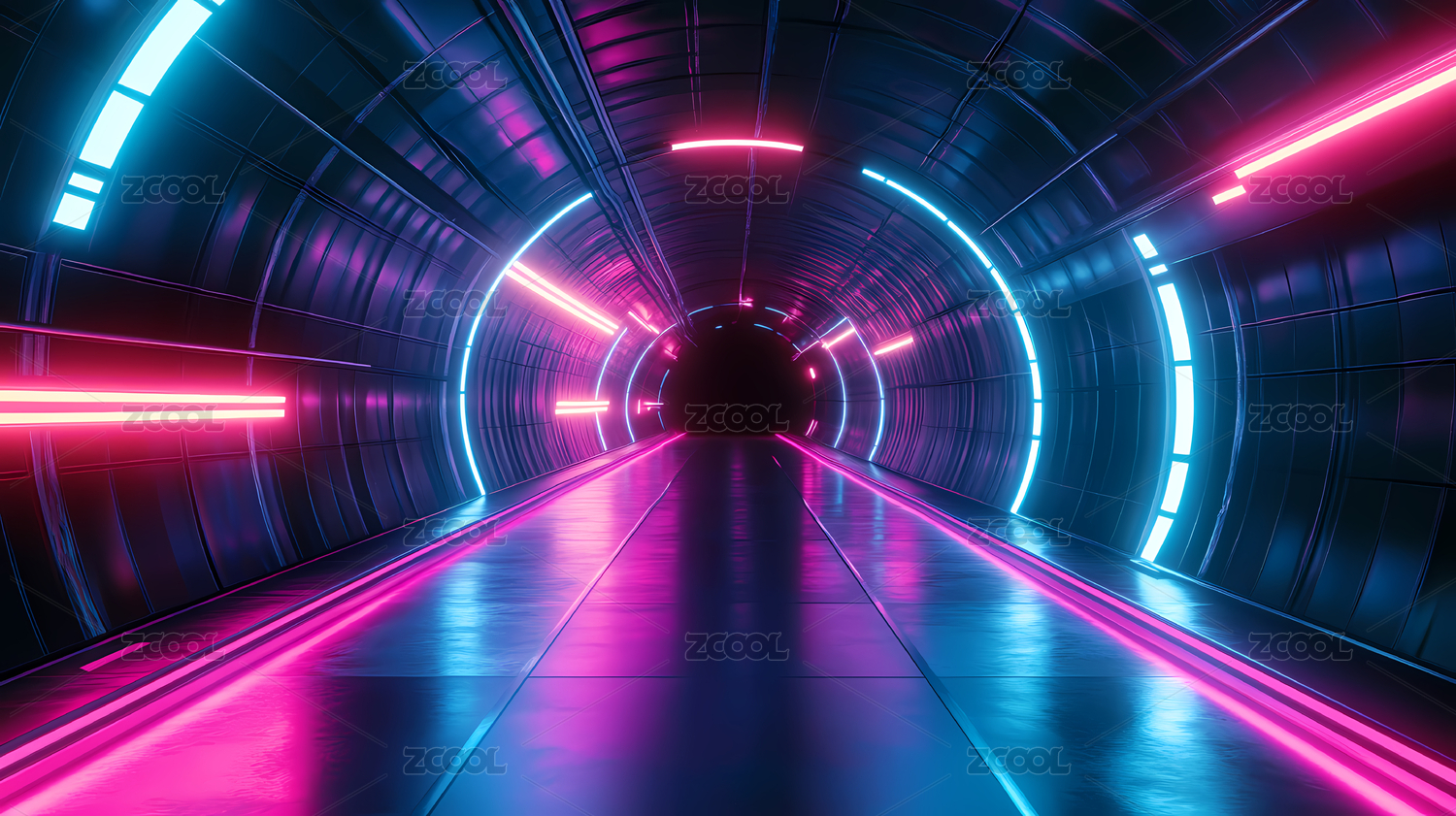 3D未来科技赛博朋克霓虹光效展台空间背景