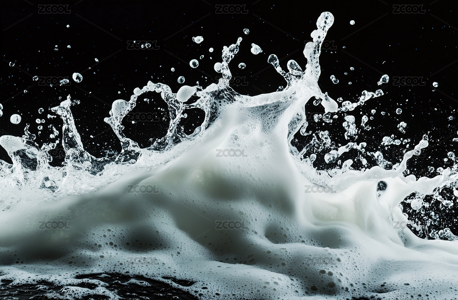 灰色背景上牛奶飞溅 形成动态水花与水滴
