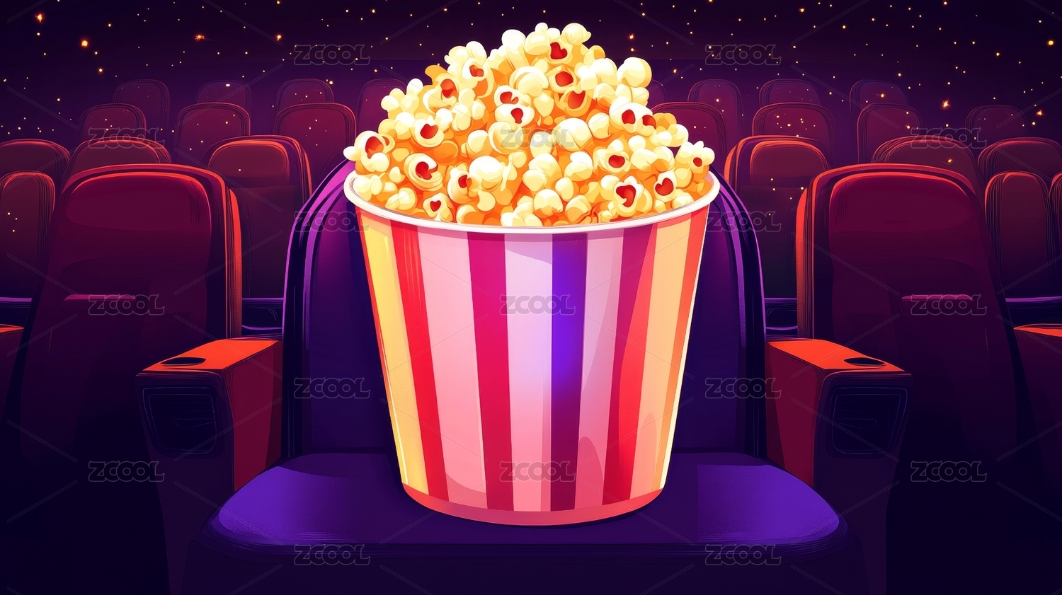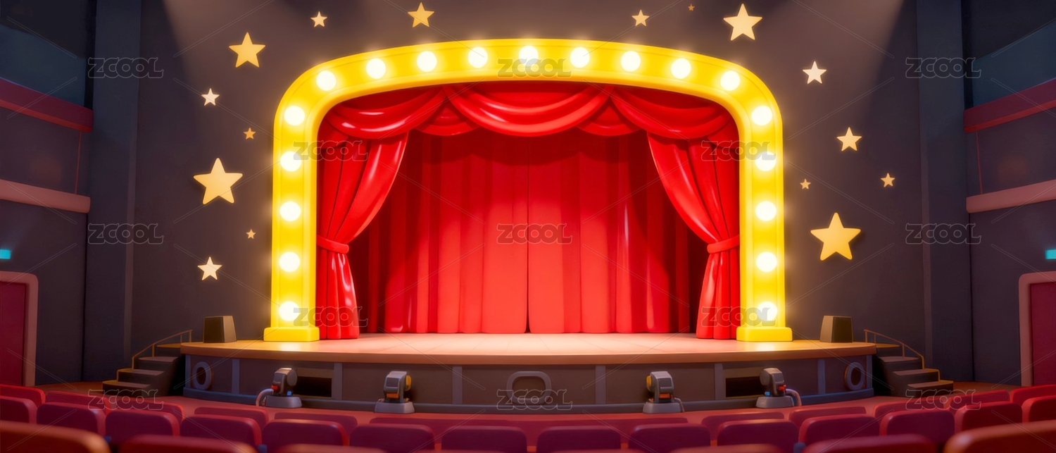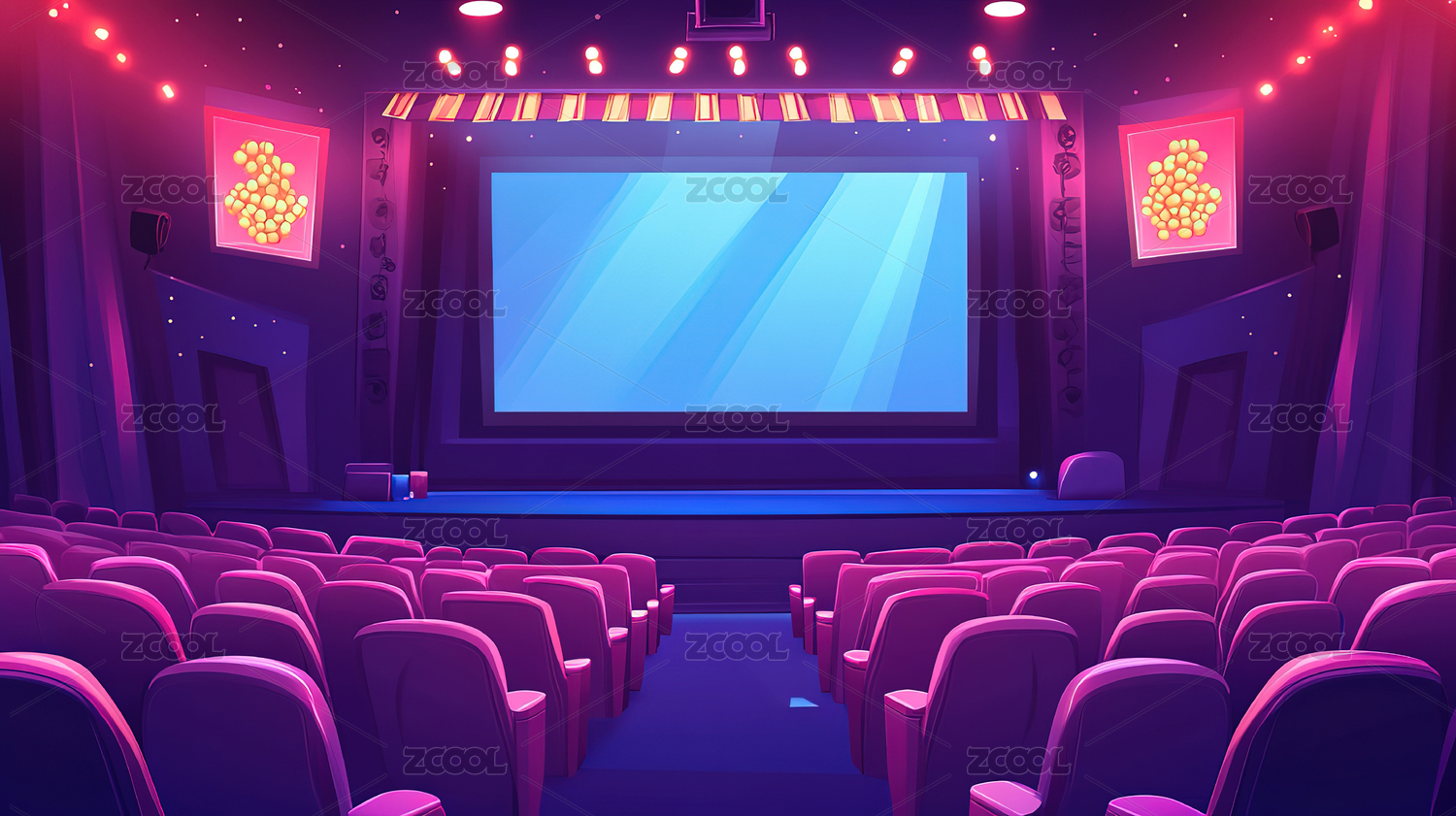 巨幕影院里中式座椅融合粉黄浅绿渐变背景