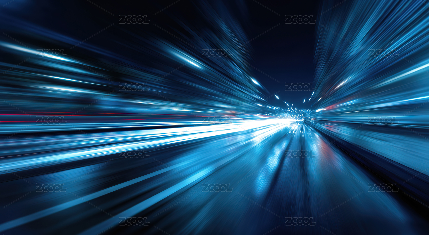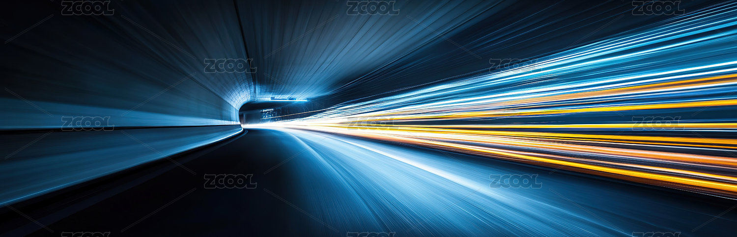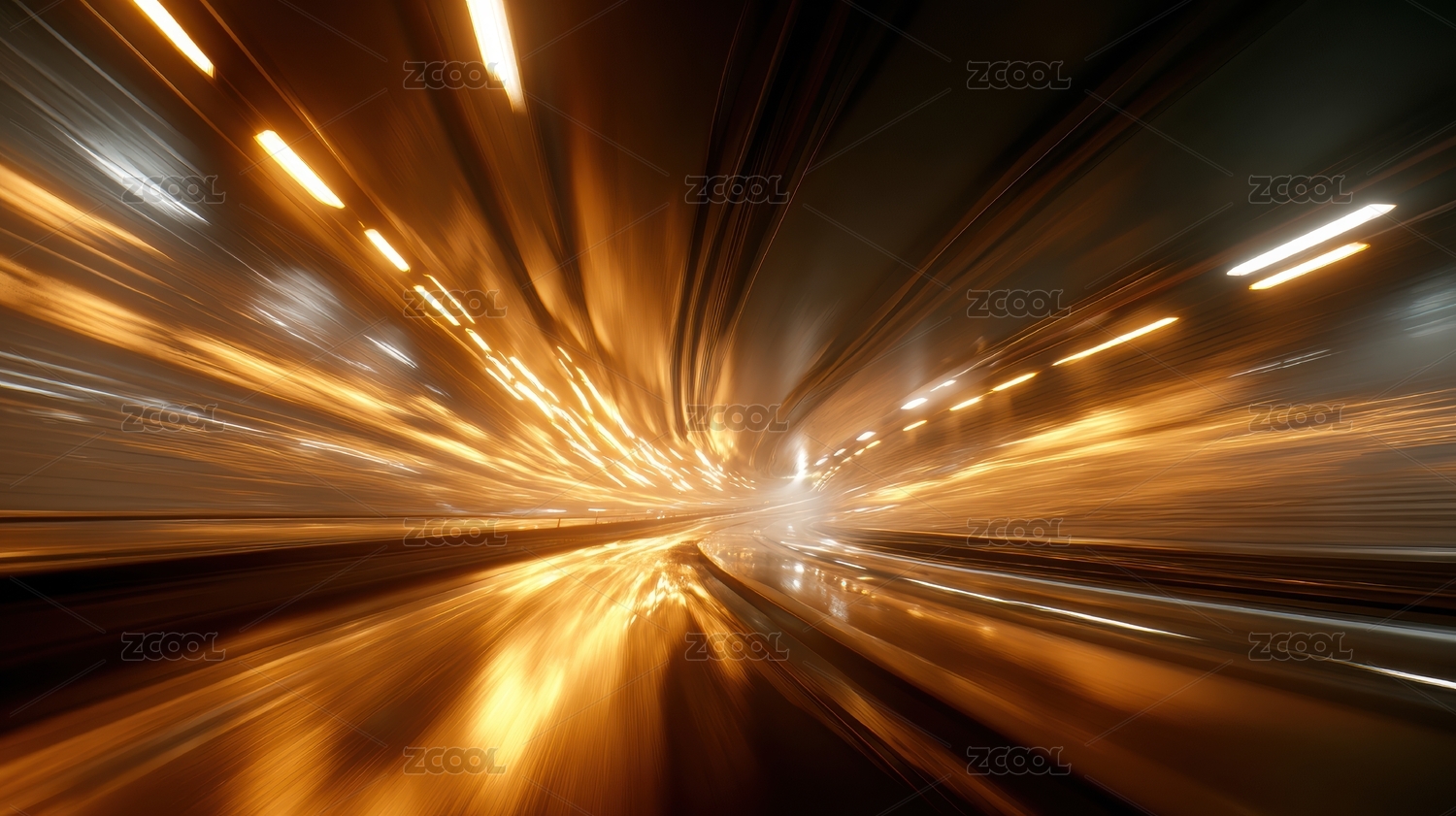 中国隧道,飞驰的汽车尾灯形成的光的轨迹