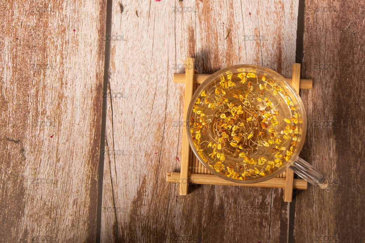 木纹桌子上的桂花茶