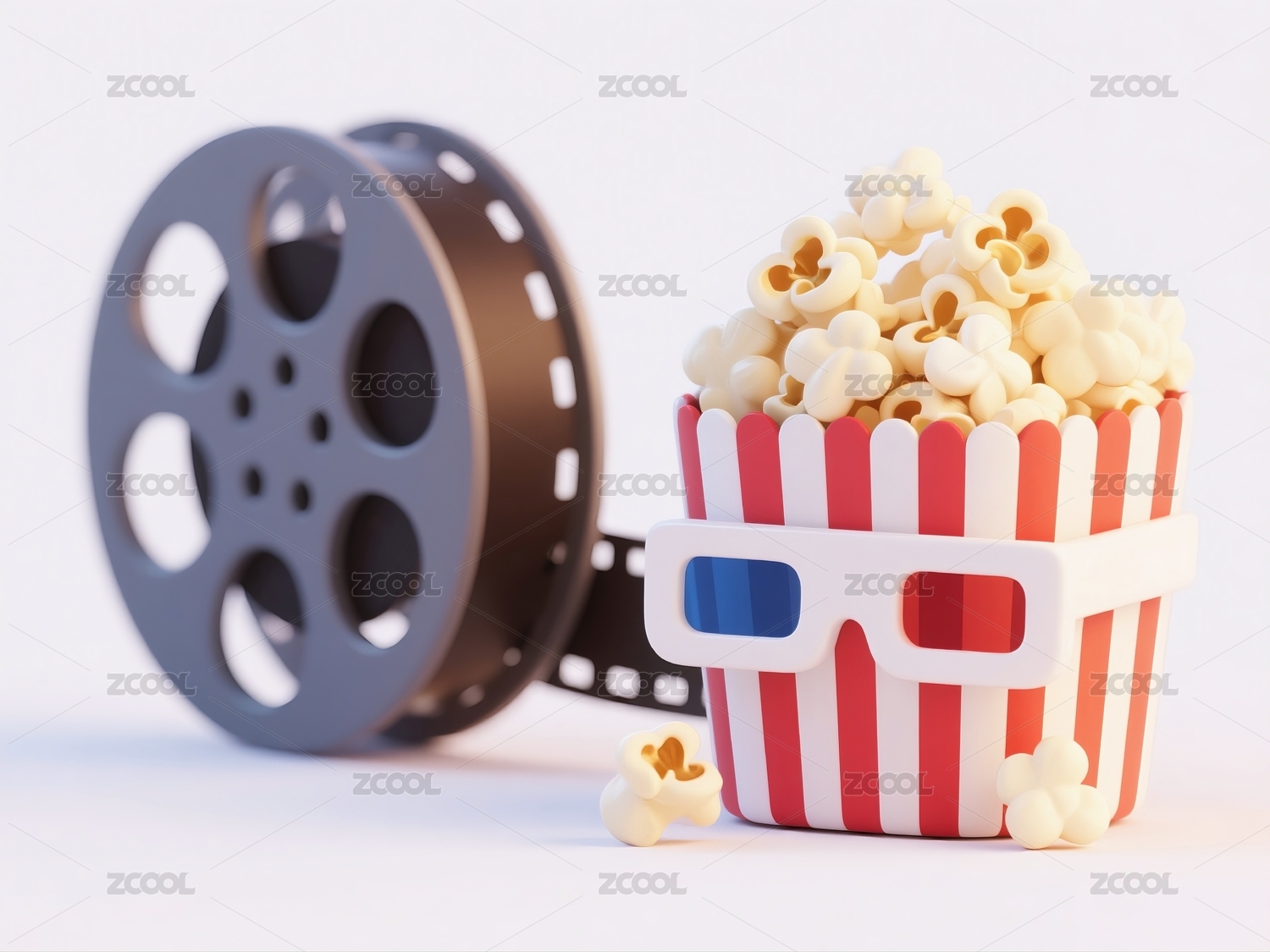 红白爆米花桶银色卷轴黑色眼镜插画背景
