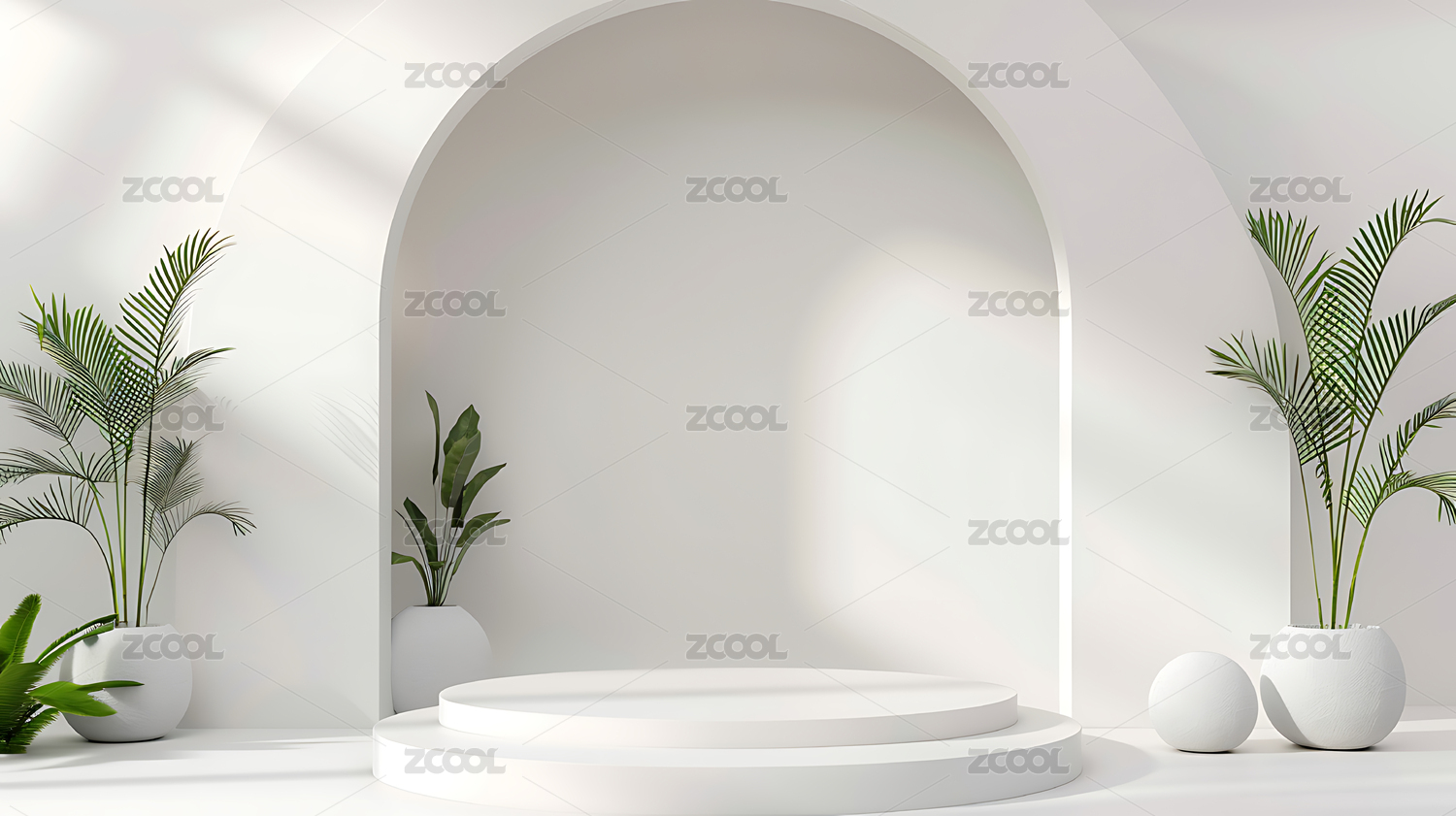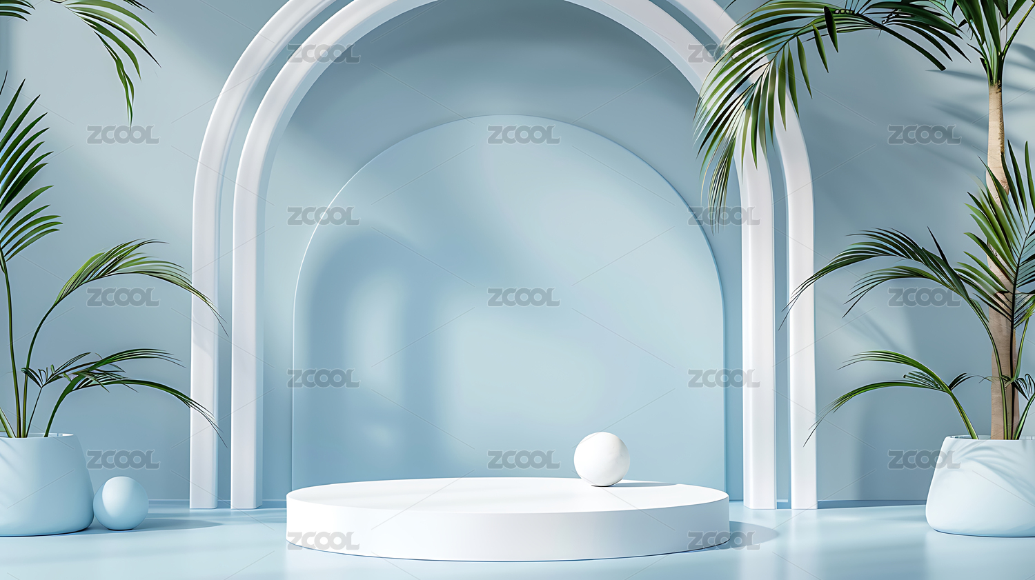 棕榈几何简约舞台3D电商产品展示台