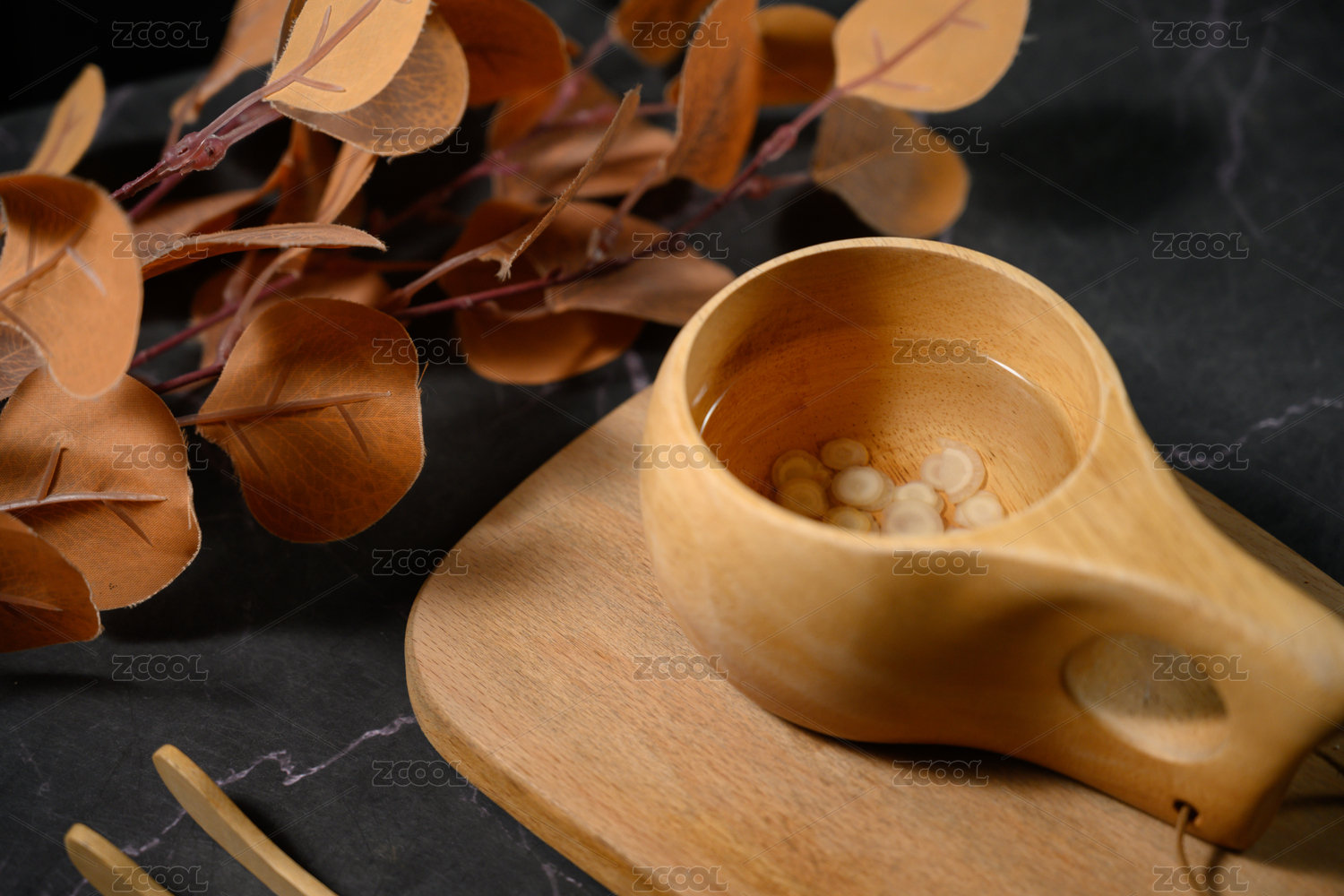 桌面上的杯子里的的甘甜可口的西洋参茶