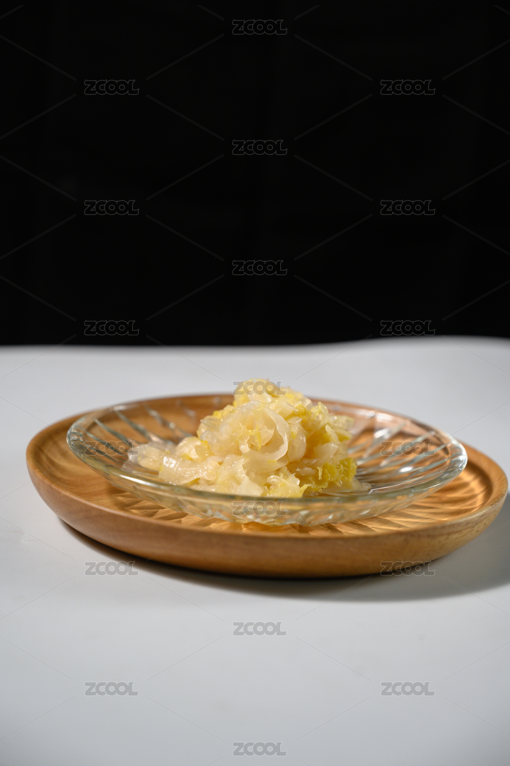 桌面上的盘子里的美味可口的香辣萝卜丁