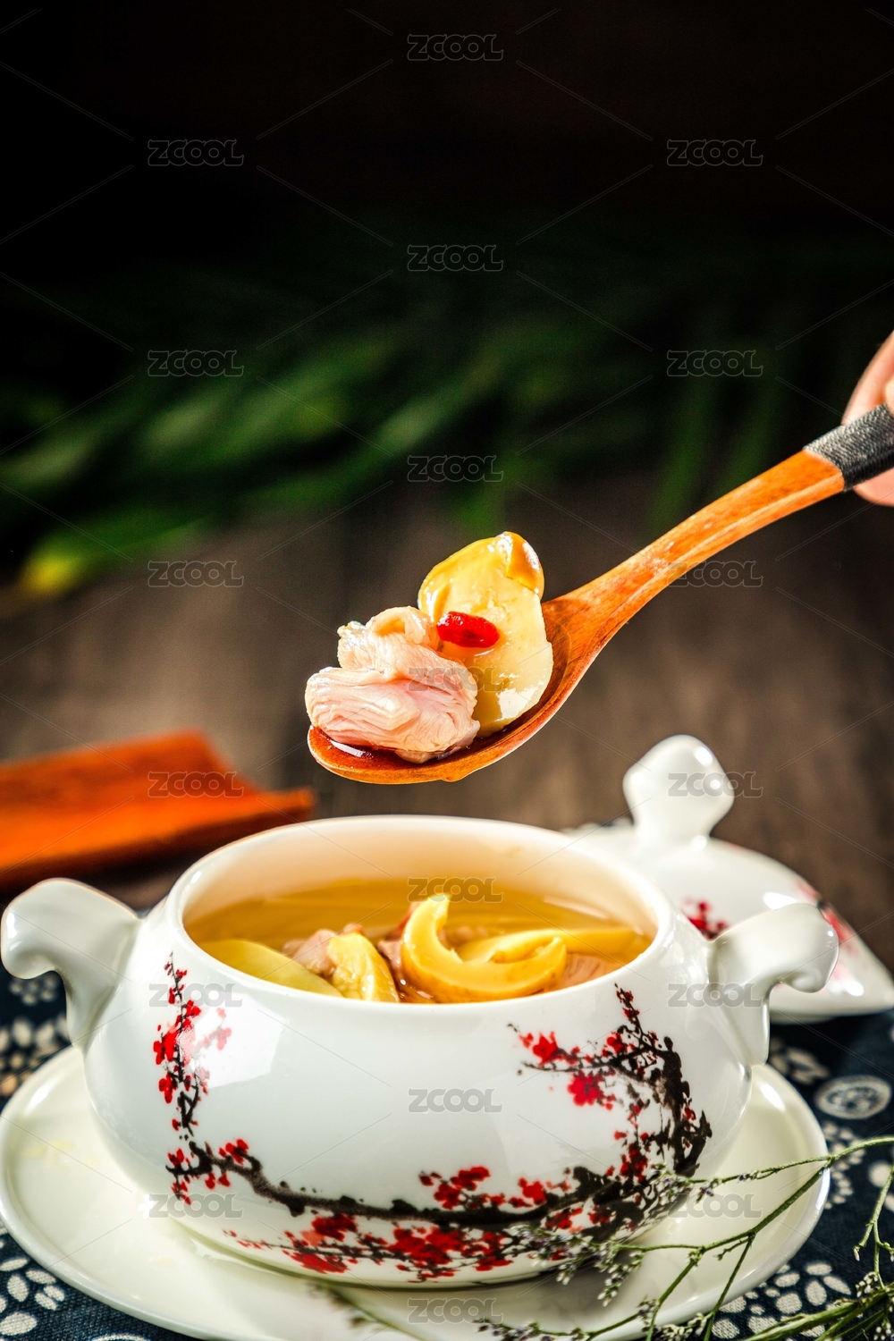白色瓷汤盅装的浓汤鱼肚(花胶)