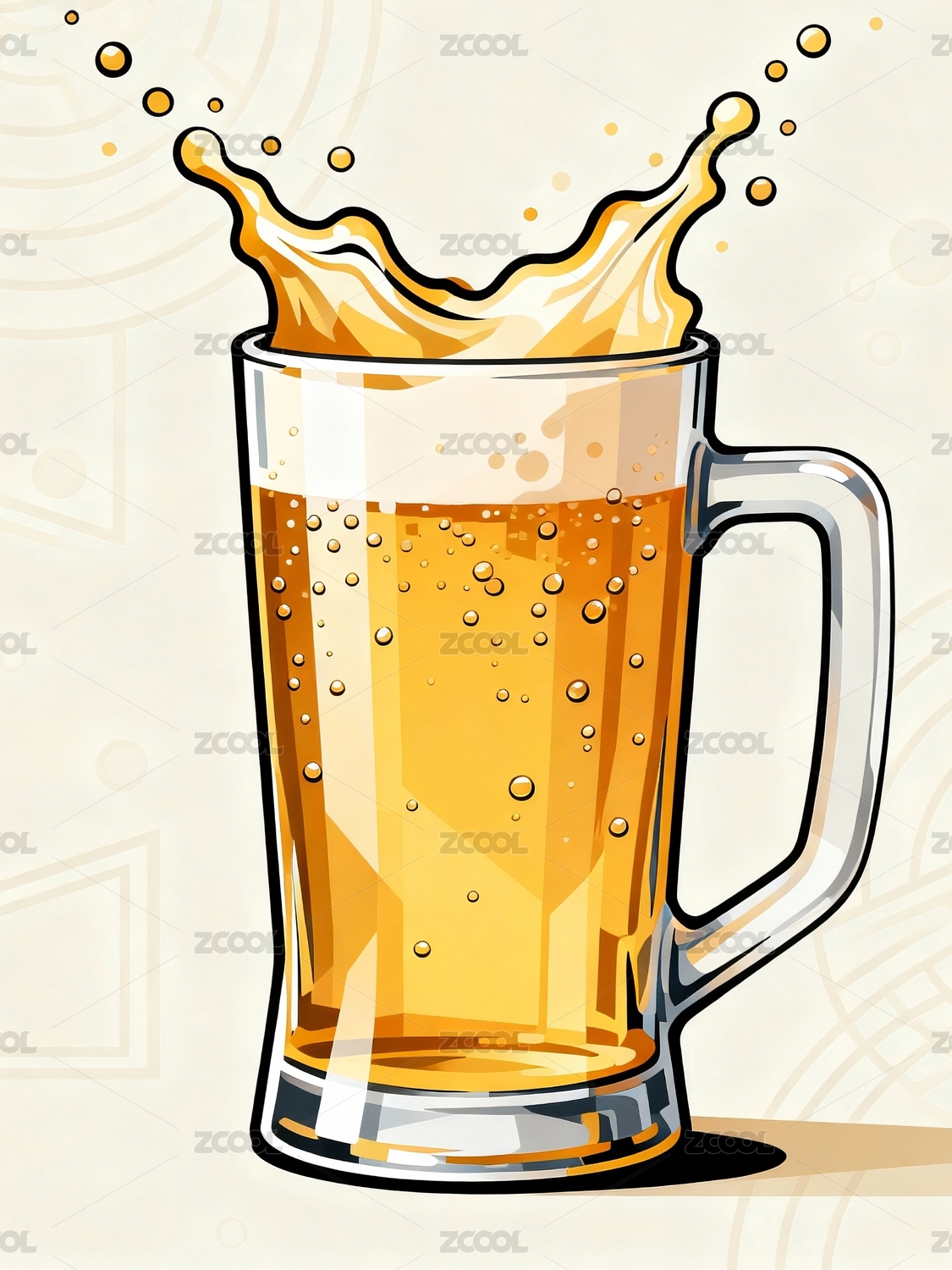 矢量卡通一杯啤酒夏天清爽啤酒节素材