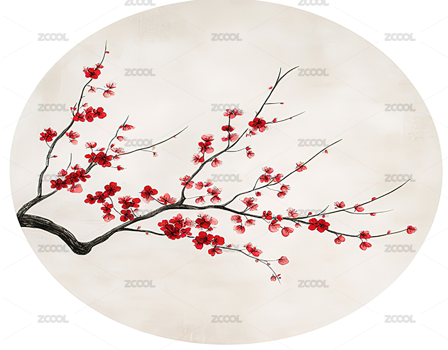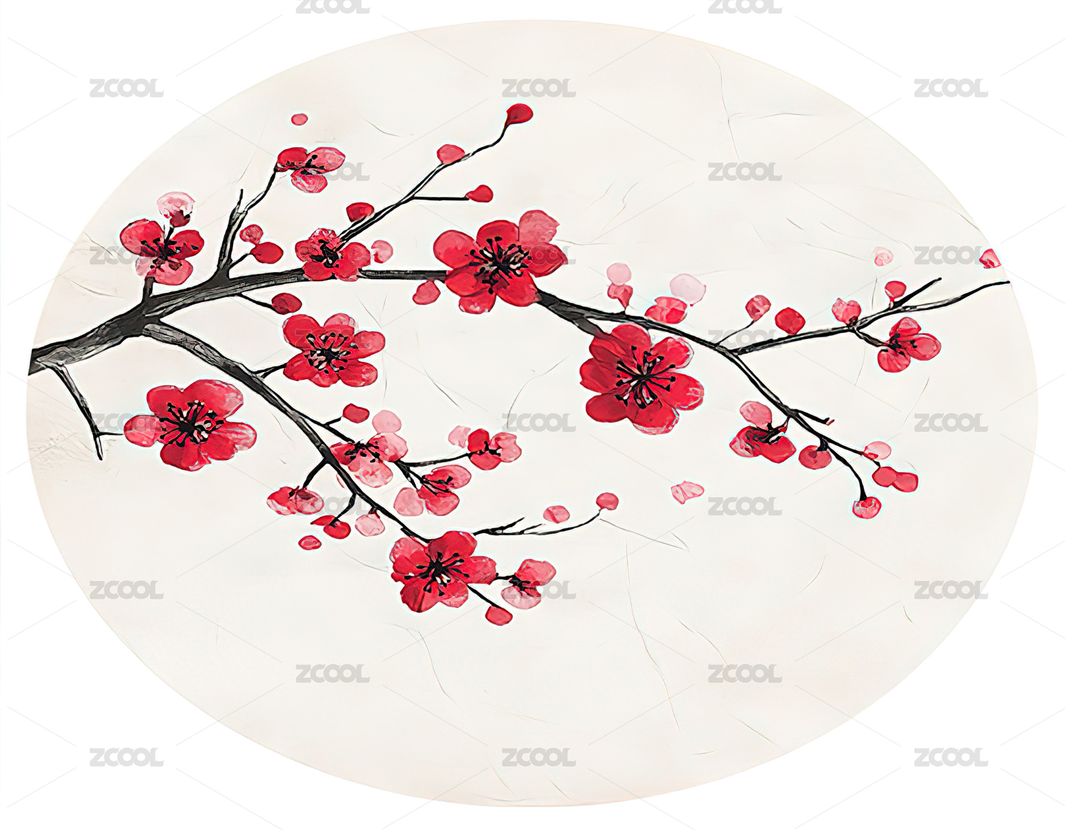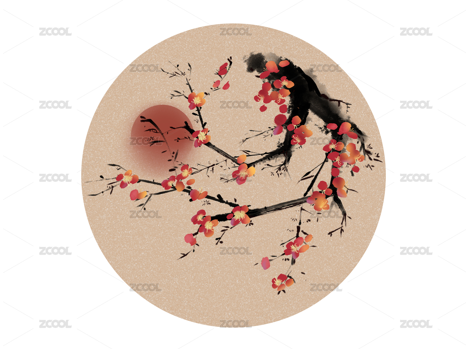 复古毛笔红色唯美落花冬至水墨梅花小元素