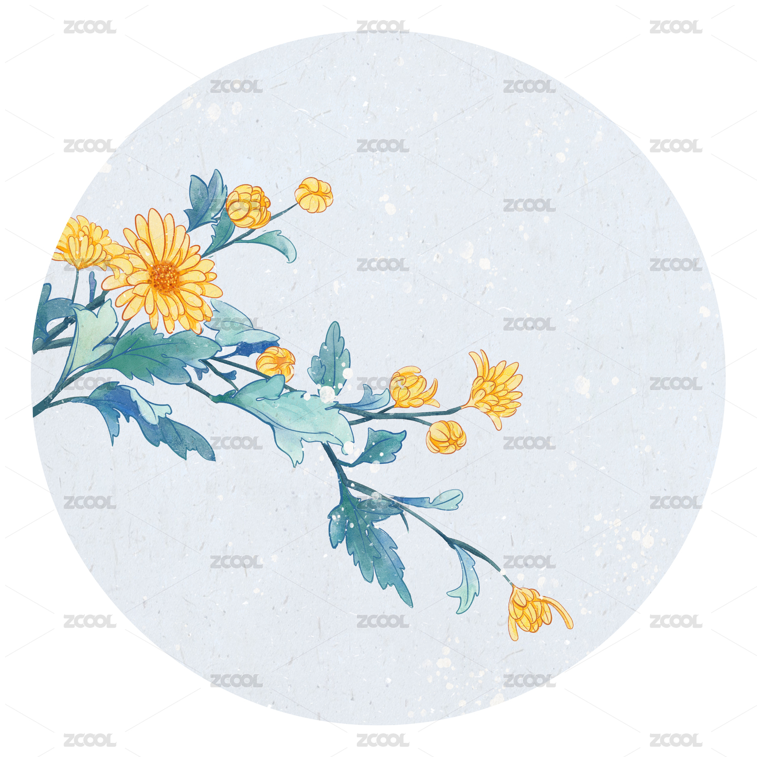 国庆节重阳节赏菊寒露霜降节气中国风圆形背景