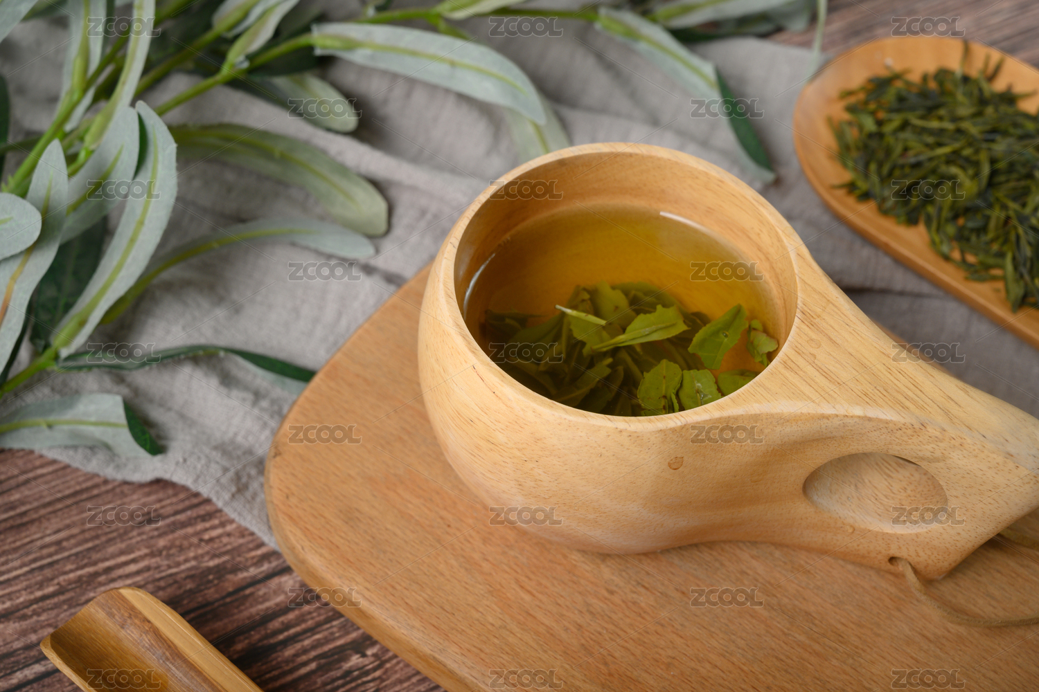 桌面上的杯子里的甘甜可口的绞股蓝茶