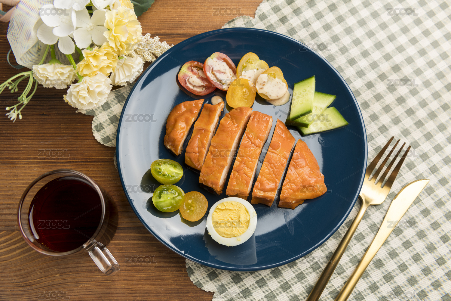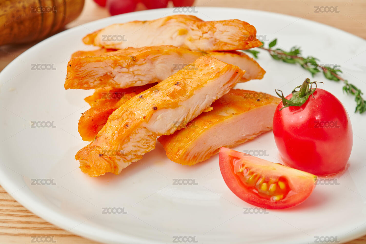 一块代餐鸡胸肉低脂鸡排摆放在桌面上特写