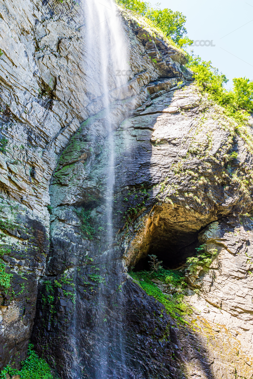 云南彝良小草坝悬崖峭壁瀑布自然风光