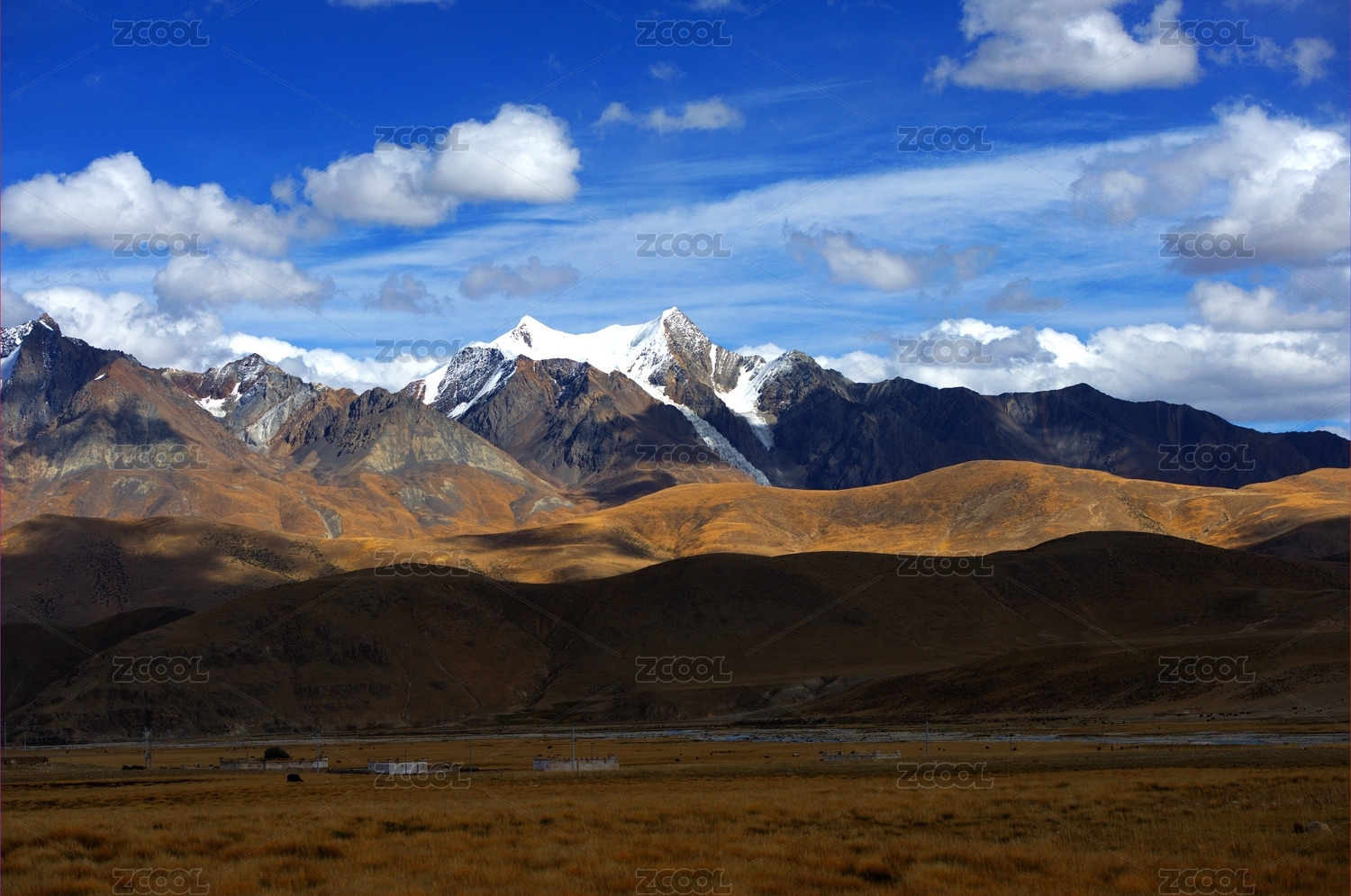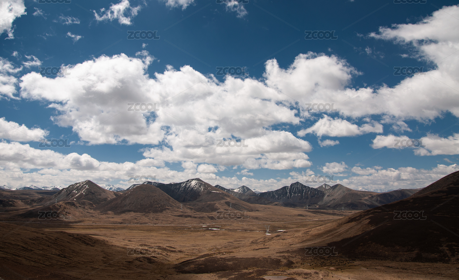 中国四川新都桥塔公草原蓝天白云雪山高原风光