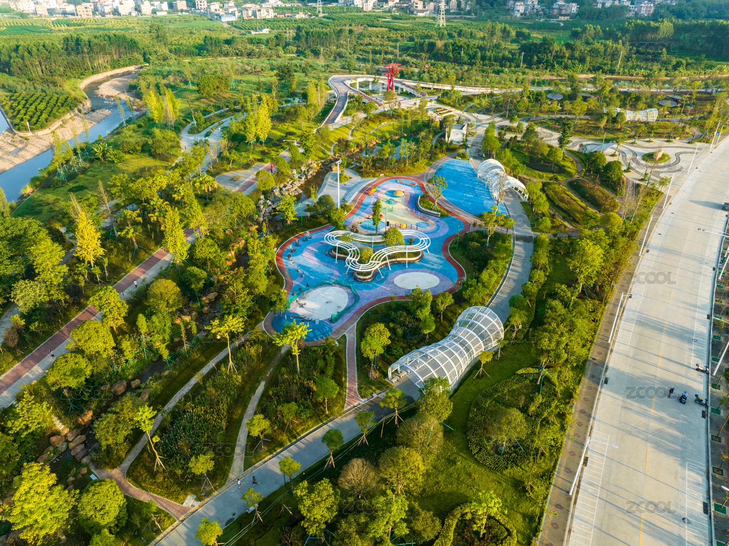 广东省河源市儿童公园航拍景观