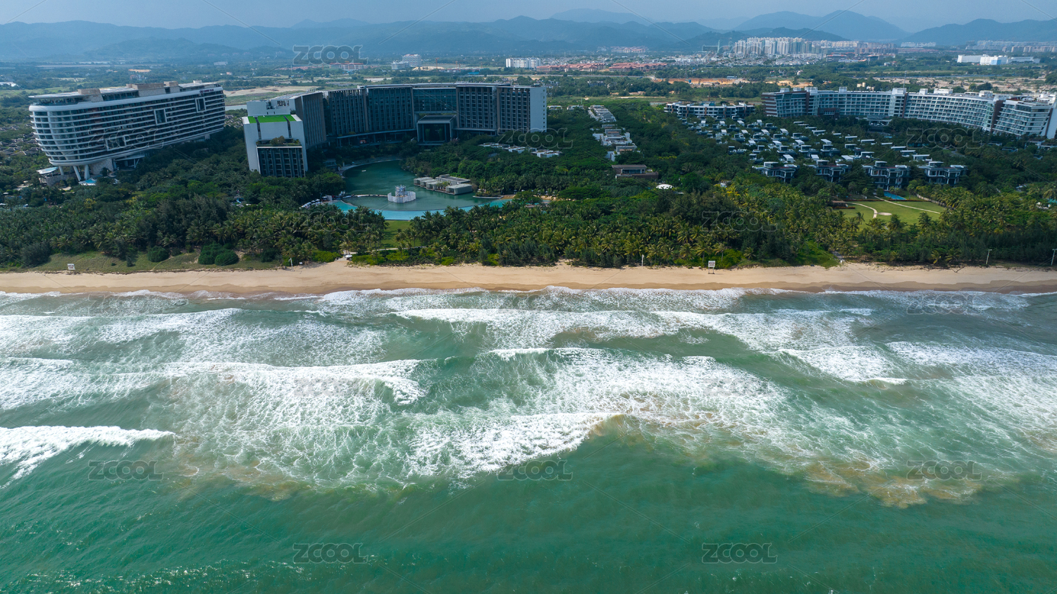 航拍中国海南三亚海棠湾度假酒店带及海景沙滩