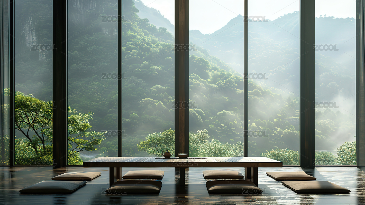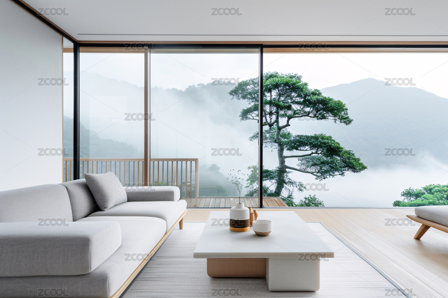 客厅,房间,沙发,桌子,露台,开放,宽敞,群山,室外,室内