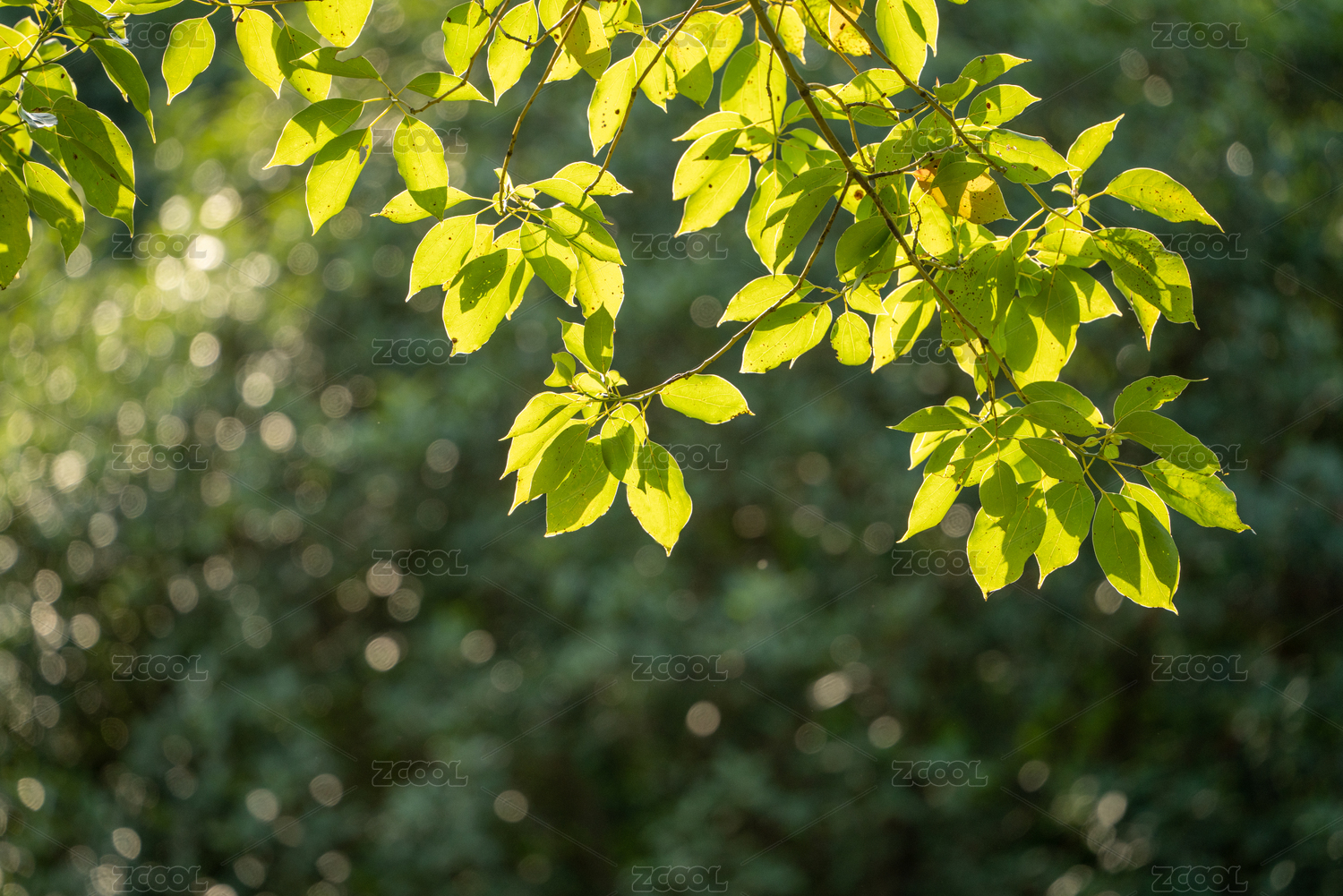 春天阳光下的绿叶