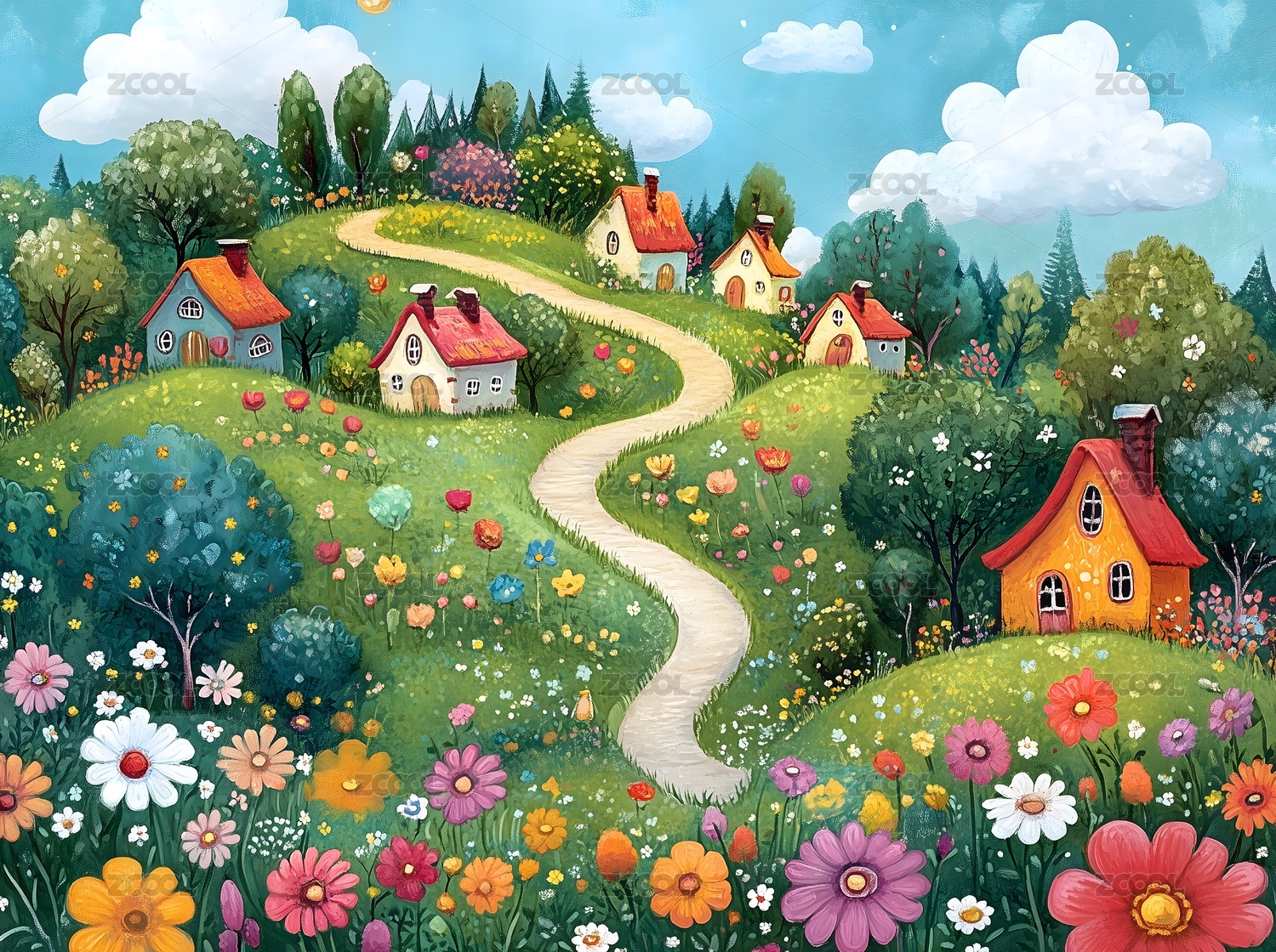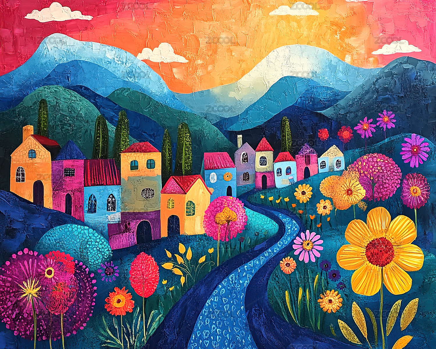 AIGC202402,装饰画,艺术,乡村,复古,版画,色彩丰富,居家,绘画,风景