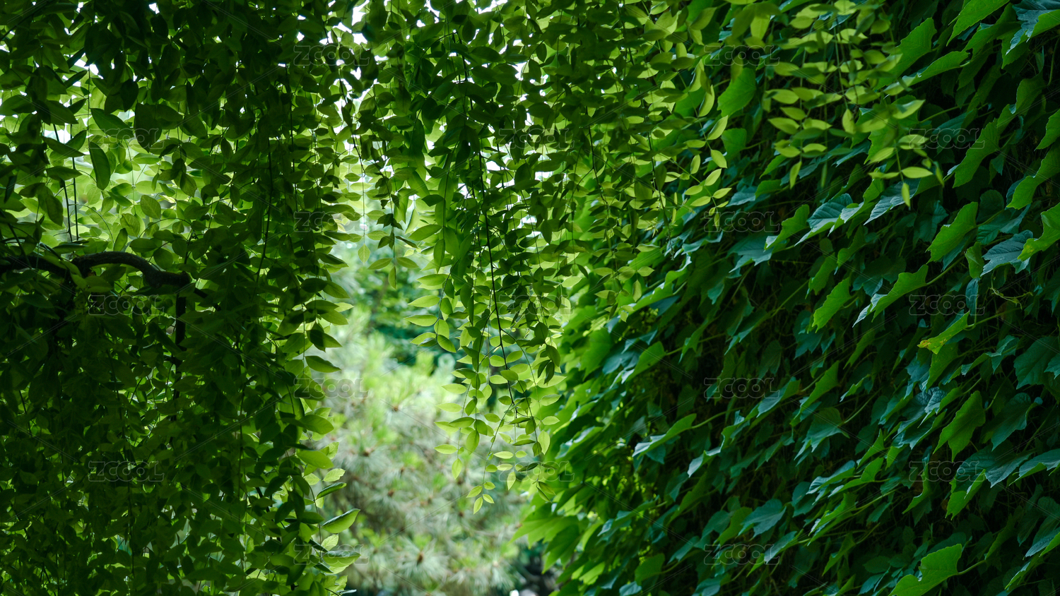 中国青岛八大关满墙绿色美丽充满生机的爬山虎