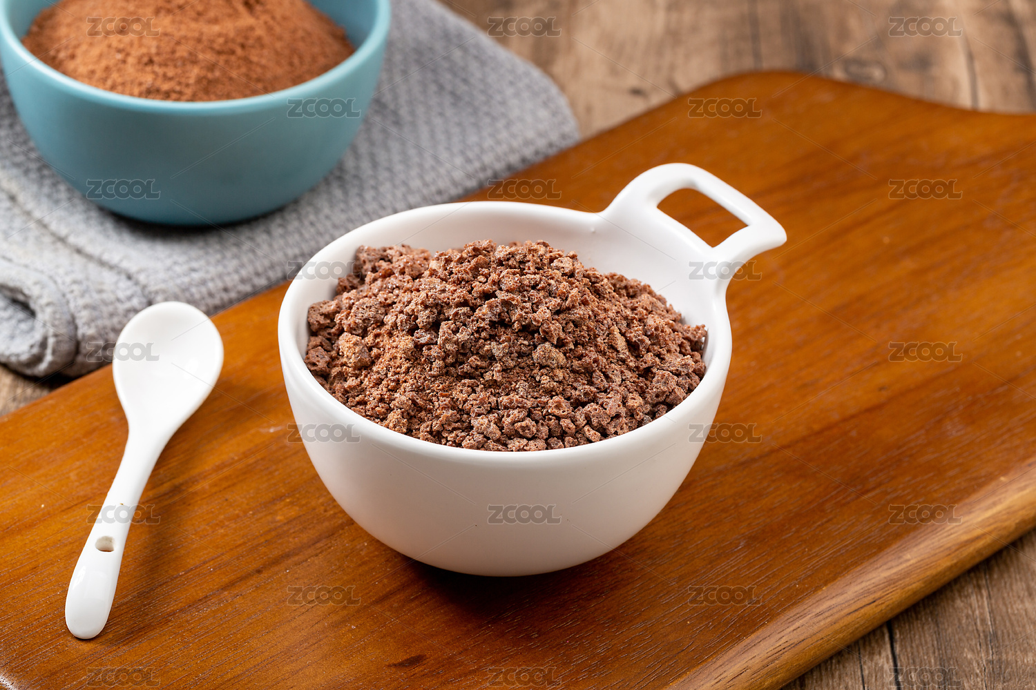 木底上放着一碟红糖粉和勺子上挖着土红糖