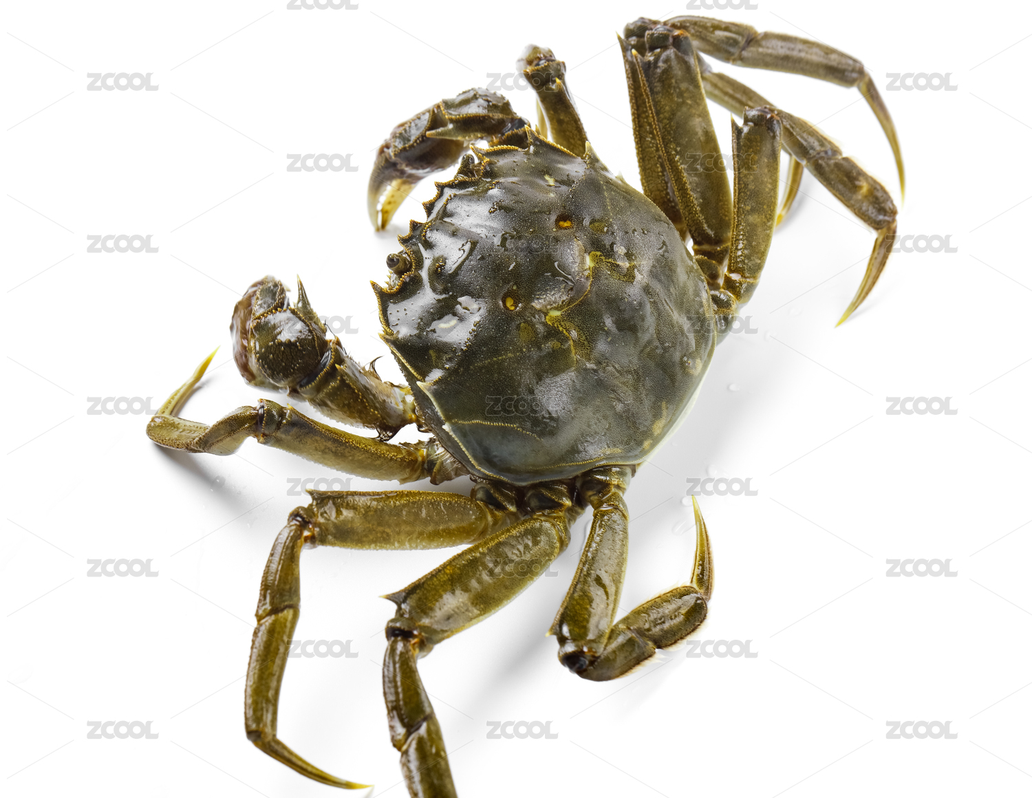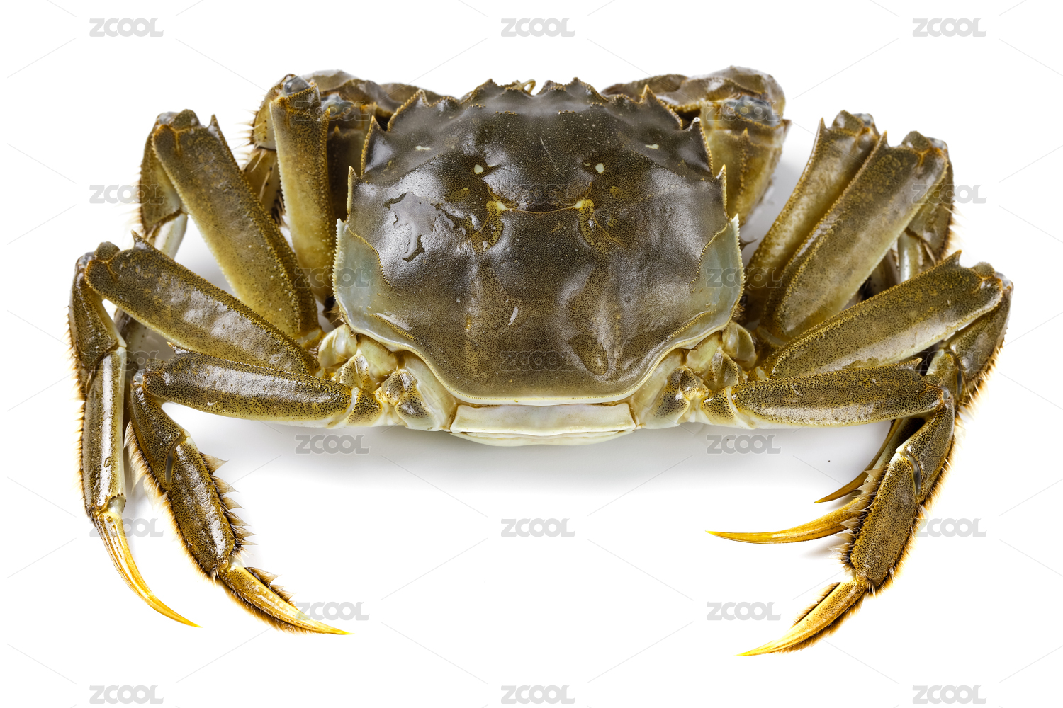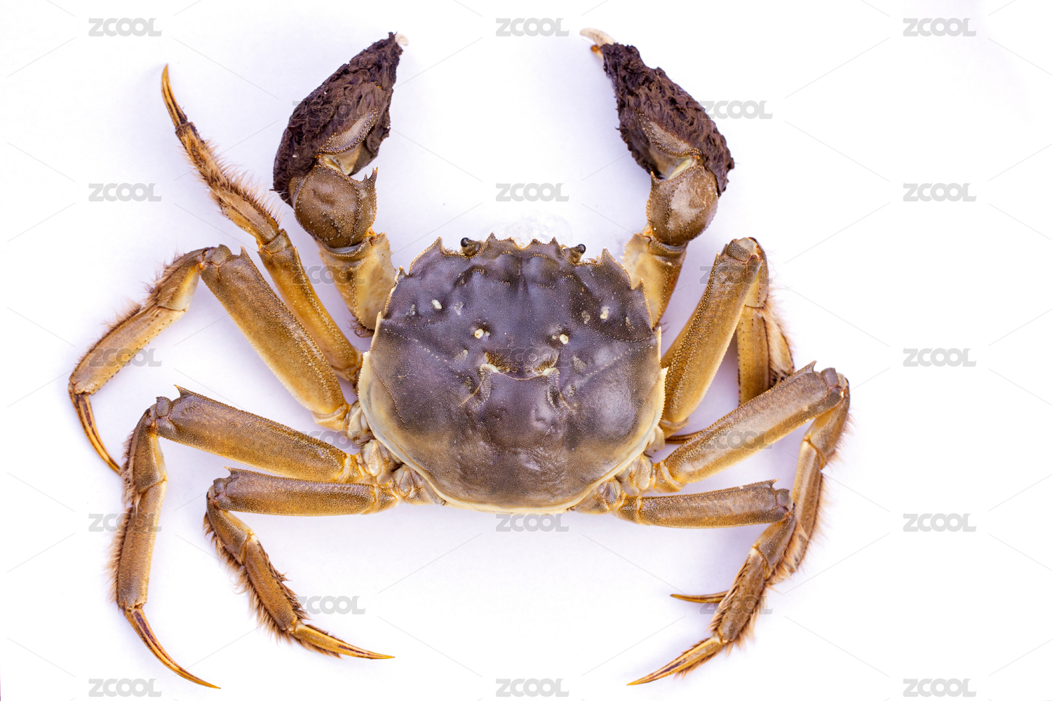 俯视白背景上一只生鲜的大闸蟹
