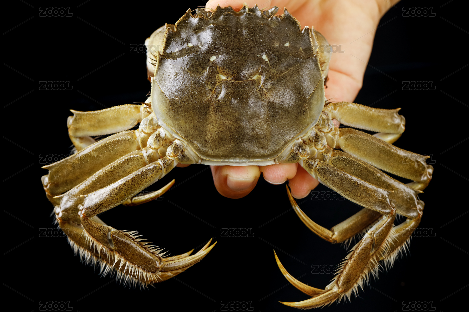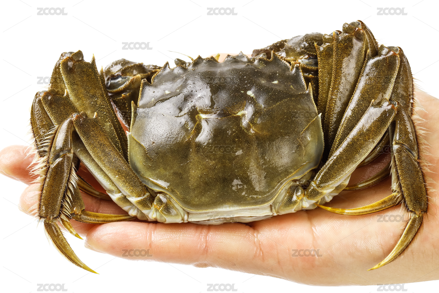 白底上手拿着的大闸蟹公蟹