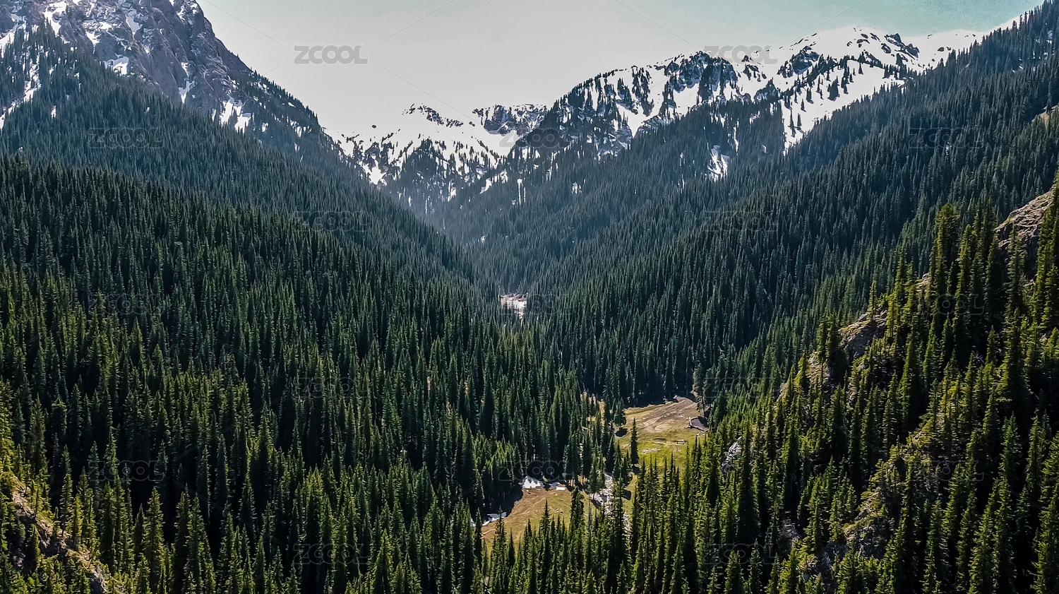 中国新疆伊犁库尔德宁雪山森林自然风光