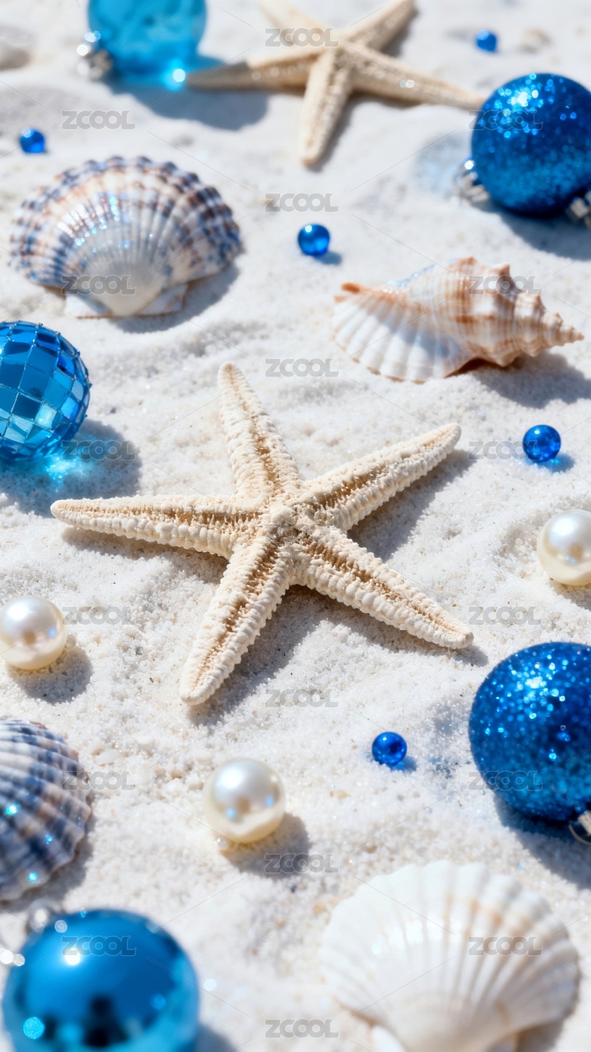 贝壳海星海景商业装饰壁纸场景