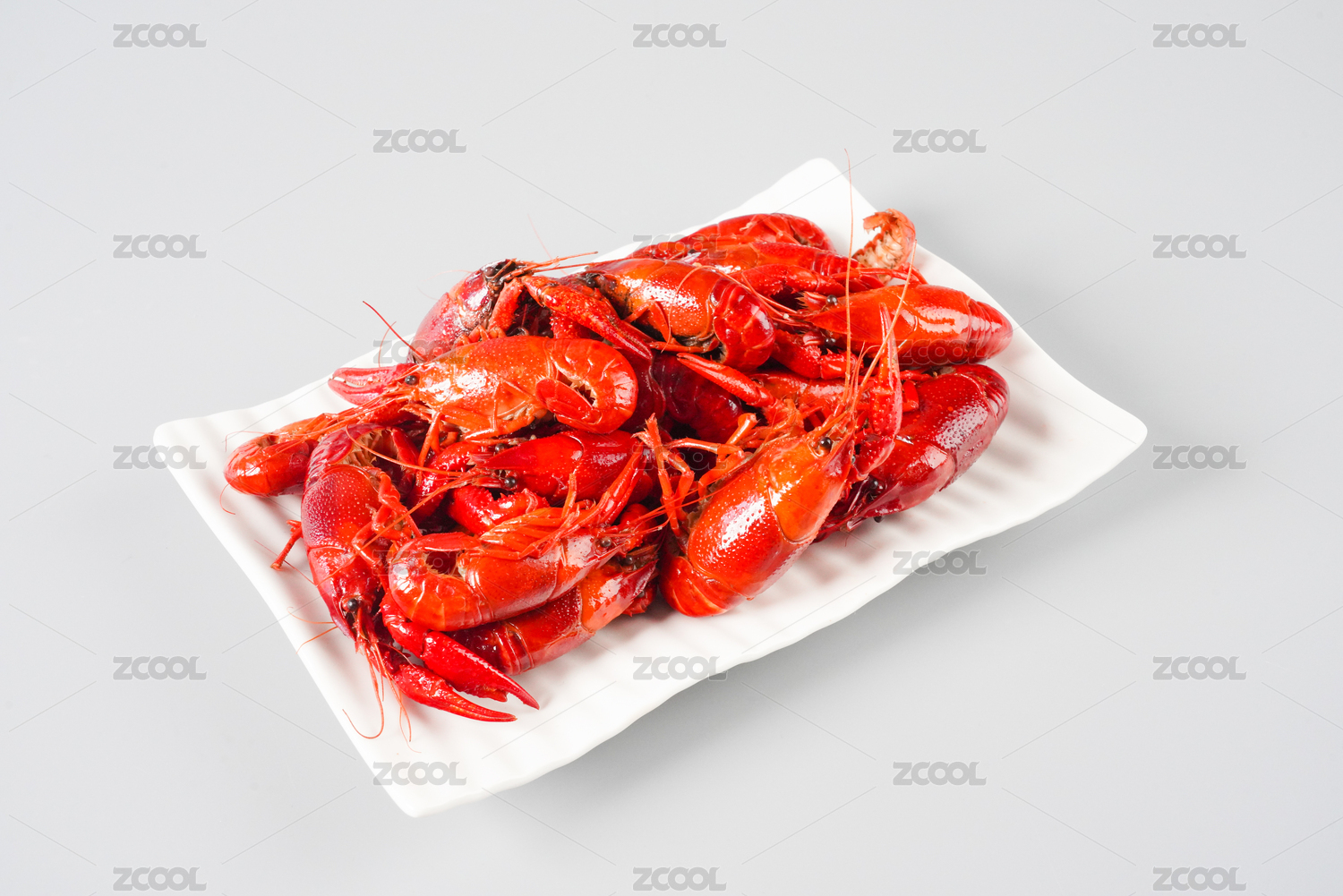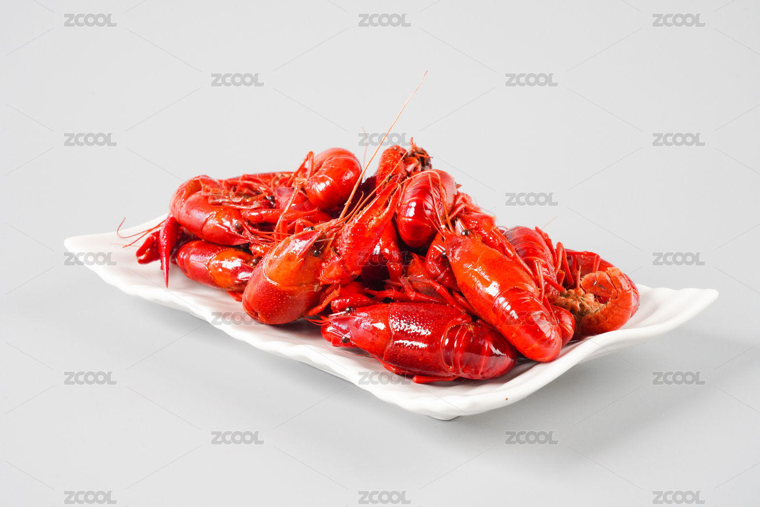 白背景上一碟美味小龙虾
