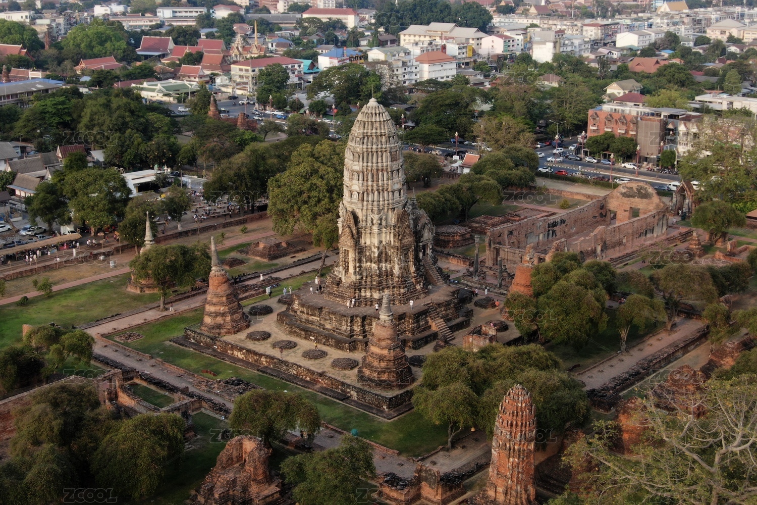 泰国,清迈古城,清迈,大佛塔寺,契迪龙寺,建筑,寺庙,风光,风景,航拍