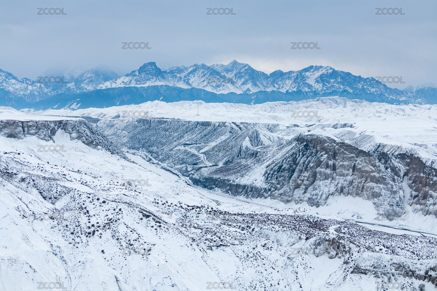 中国新疆伊犁州奎屯市安集海大峡谷雪景