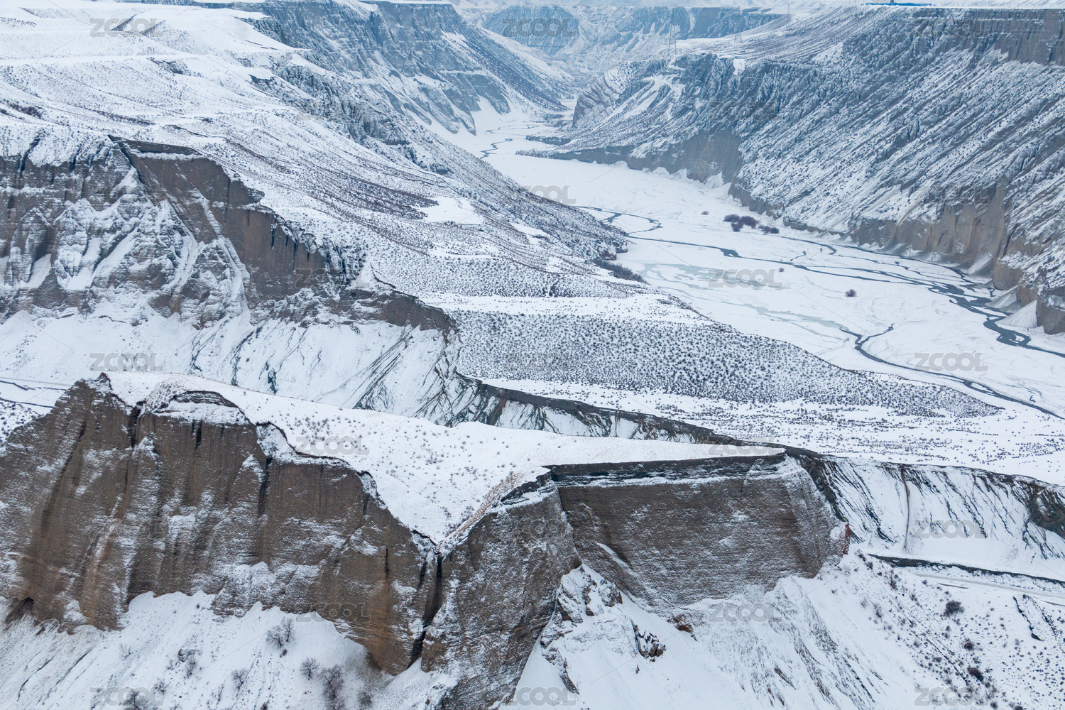 中国新疆伊犁州奎屯市安集海大峡谷的雪景
