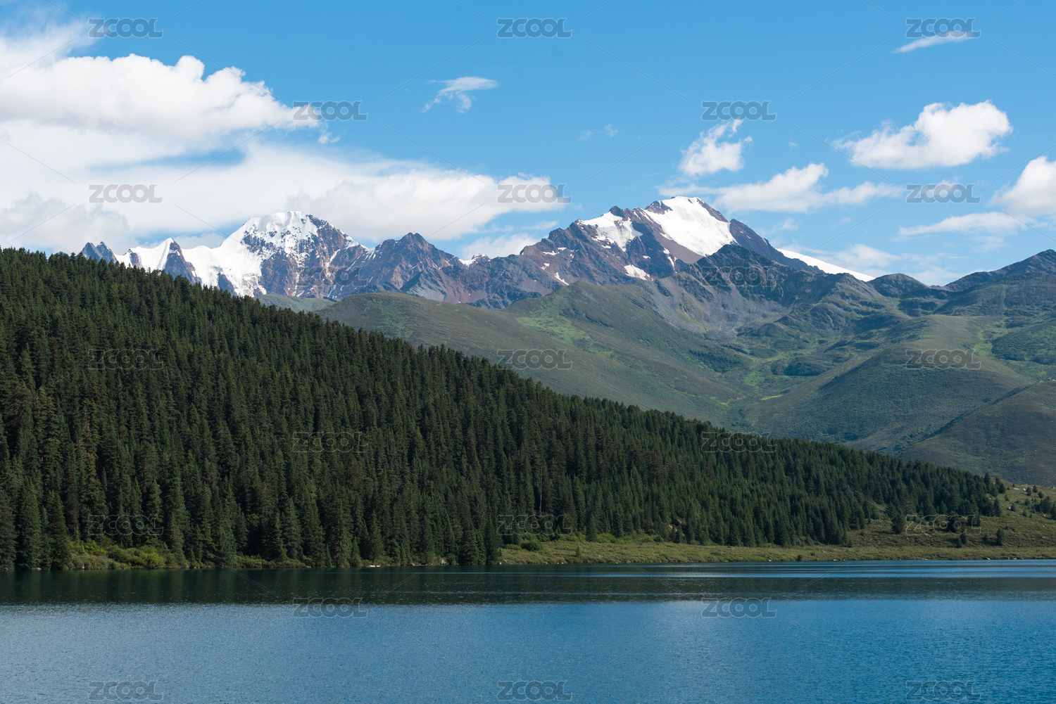 中国甘孜措普沟湖泊雪山森林山脉山川风光