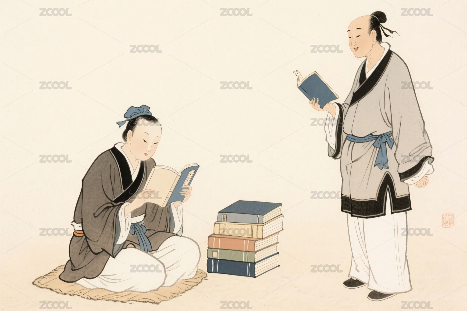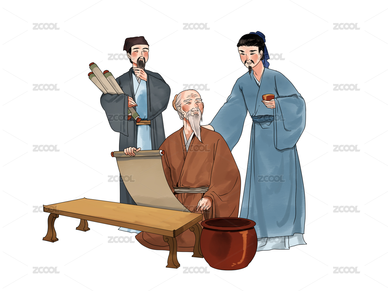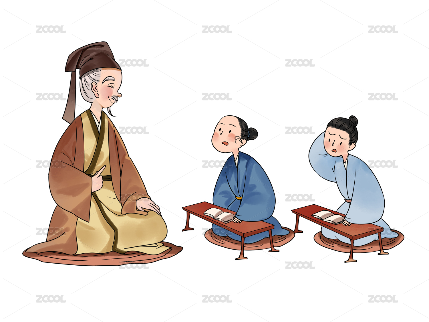 古代人物孔子学生插画
