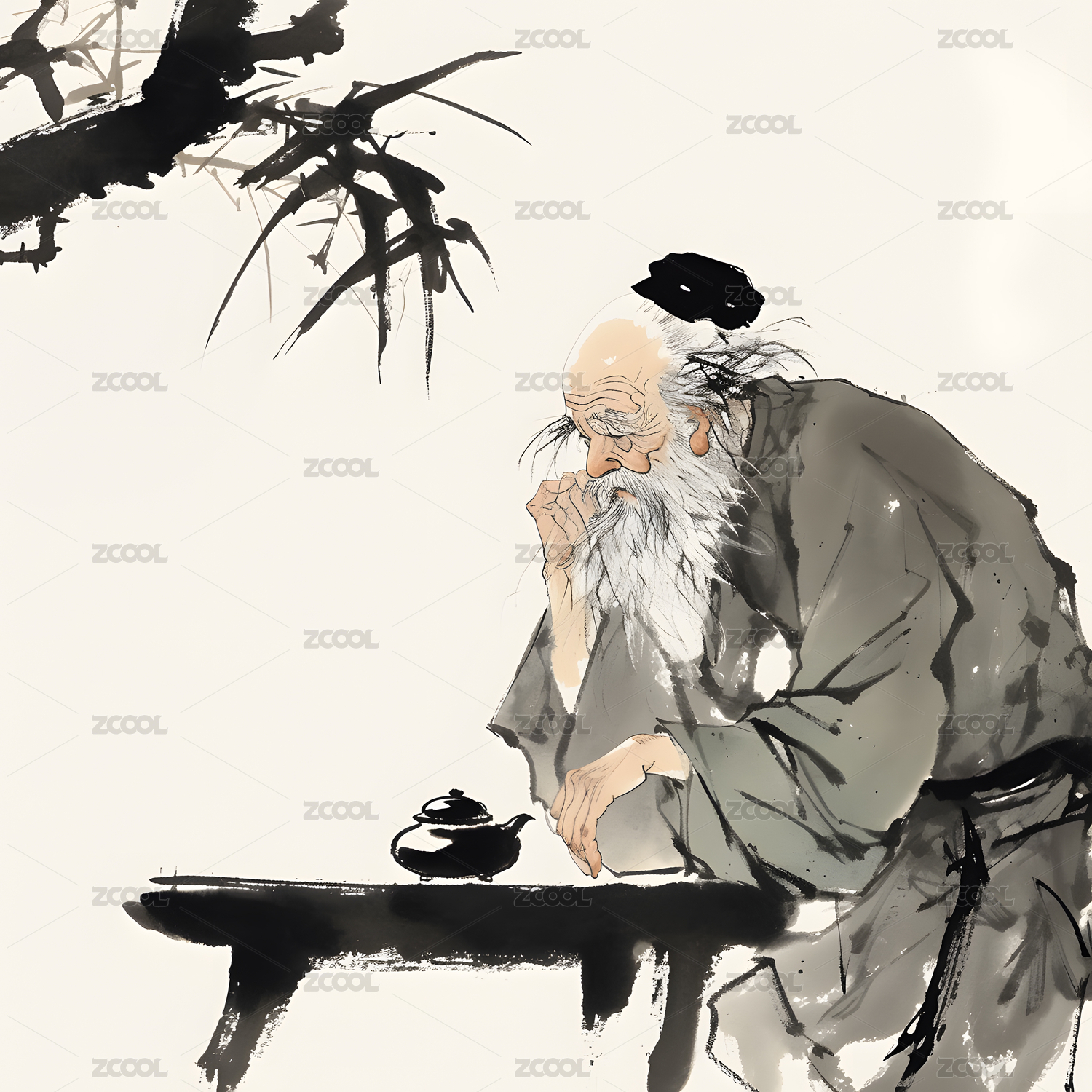 水墨风古代老人