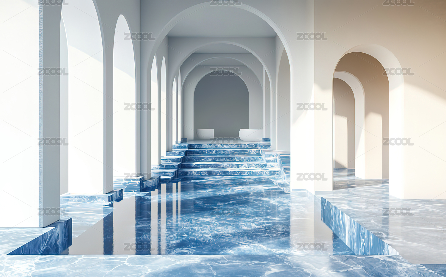 拱形的几何体室内场景3D渲染