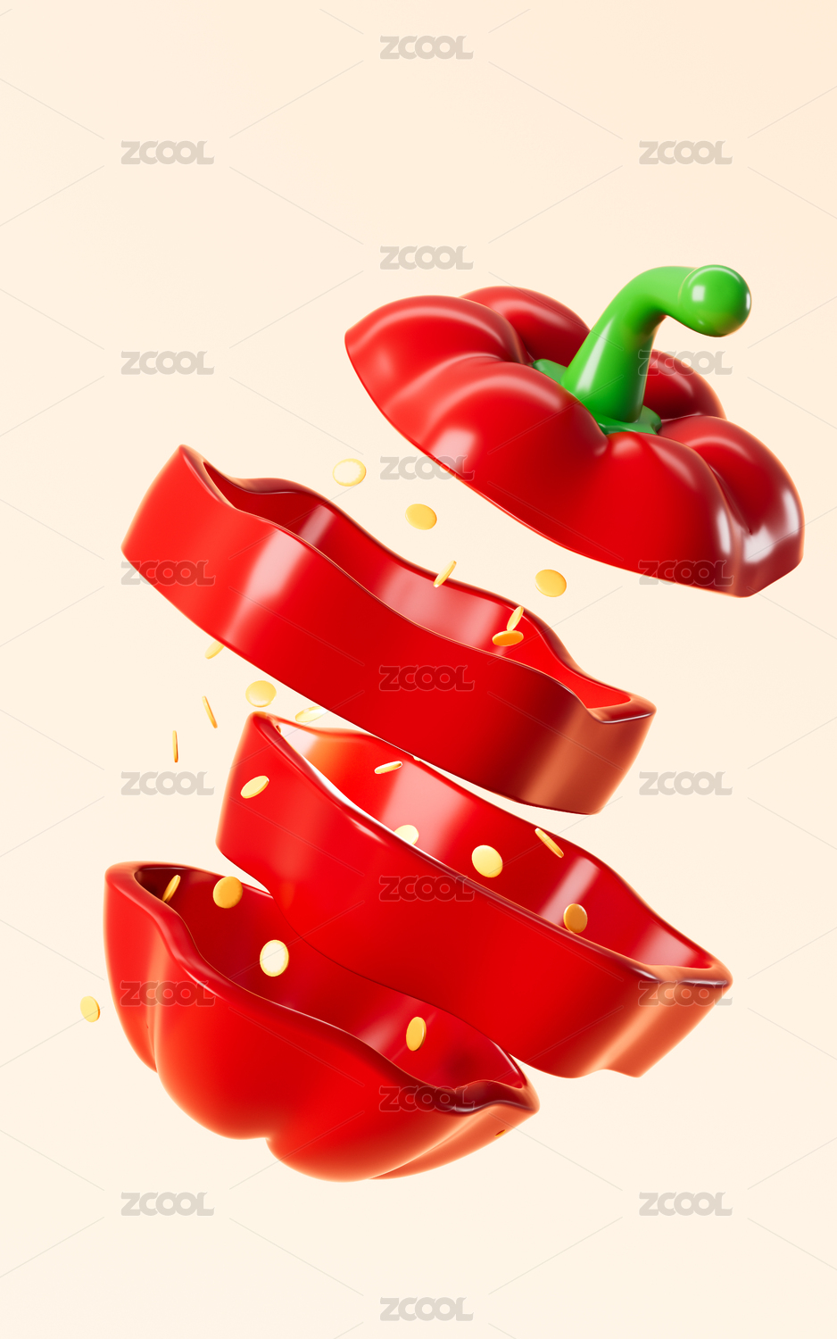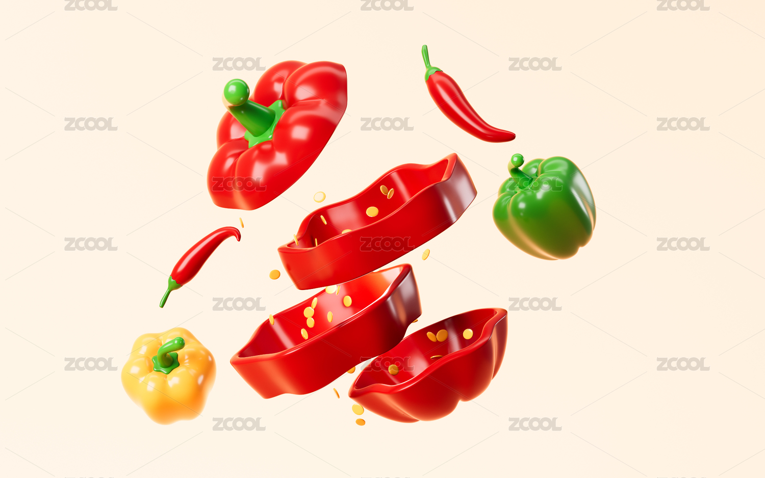 3D,插画,健康,新鲜,营养,蔬菜,食物,植物,烹饪,甜椒