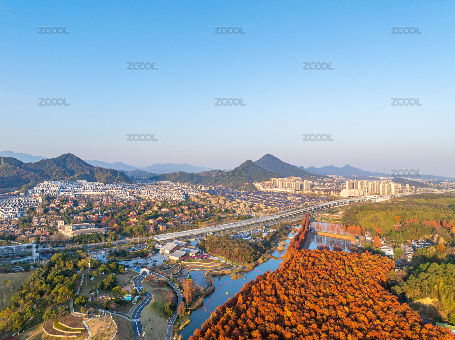 航拍杭州留下西穆坞村屏基山公园与居民区