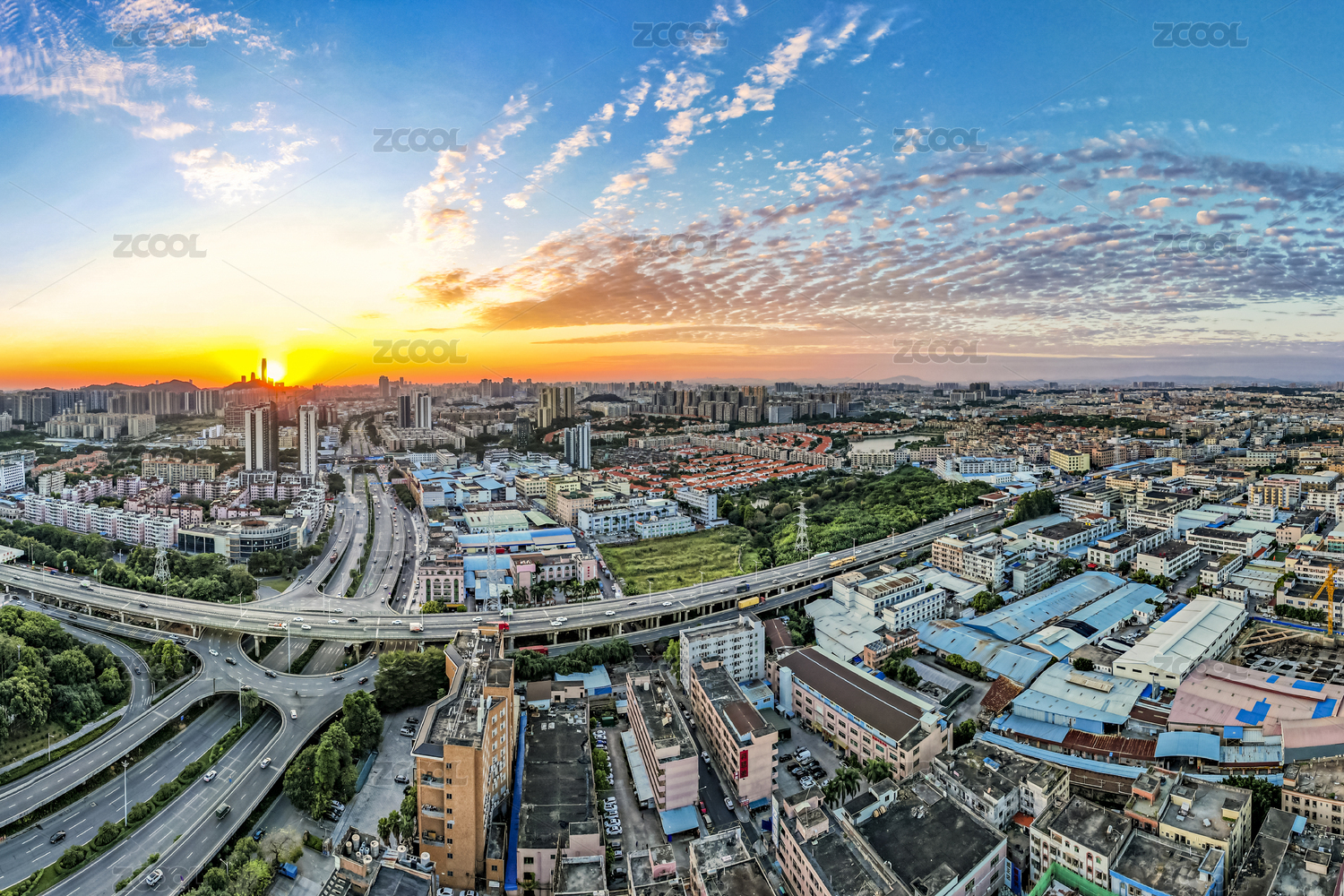 华南地区,粤港澳大湾区,广东省,东莞市,寮步镇,城市风光,日落风光,航拍,日落,晚霞