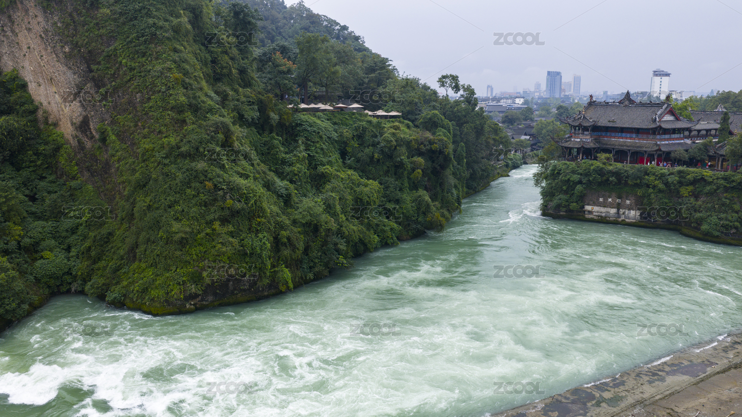 春季枯水期的四川成都都江堰与清澈碧绿岷江