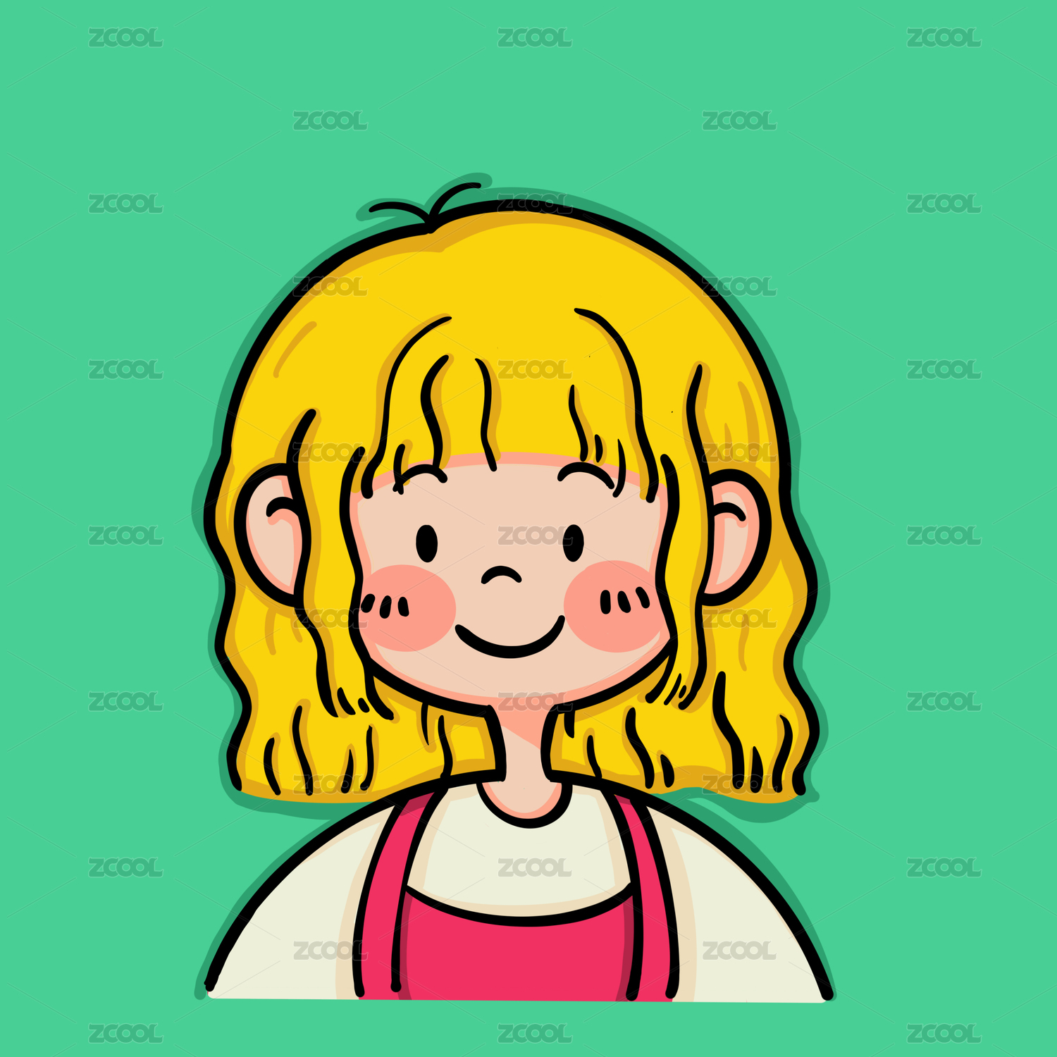 女性,简笔,可爱,夸张,卷毛,头像,人物,卡通