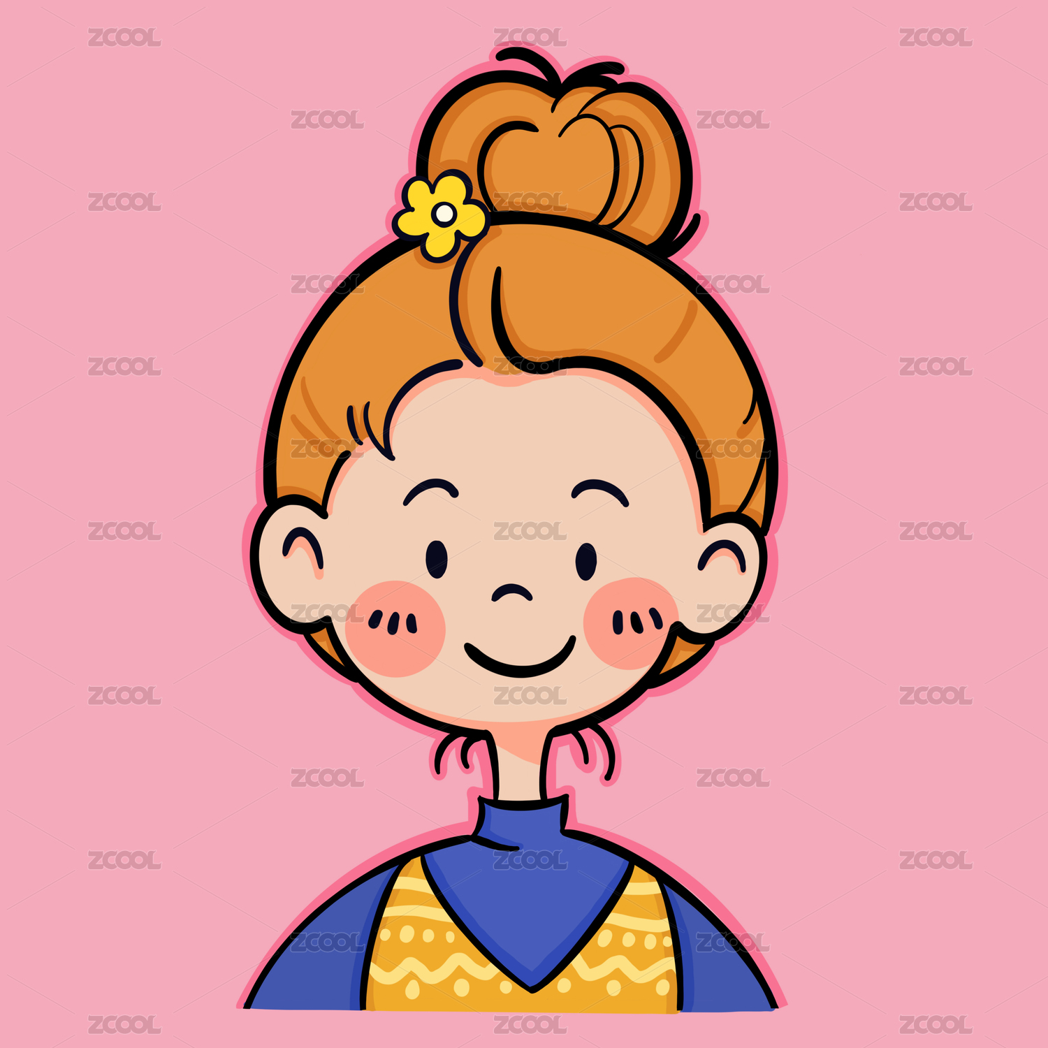 穿黄裙子的女孩卡通描边风格头像