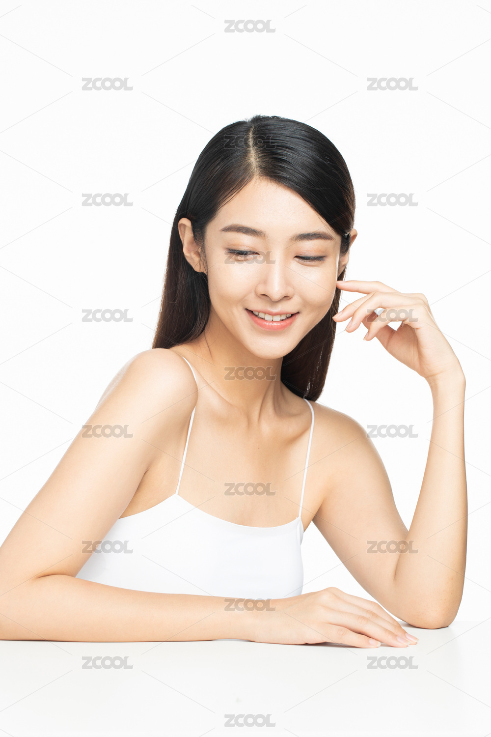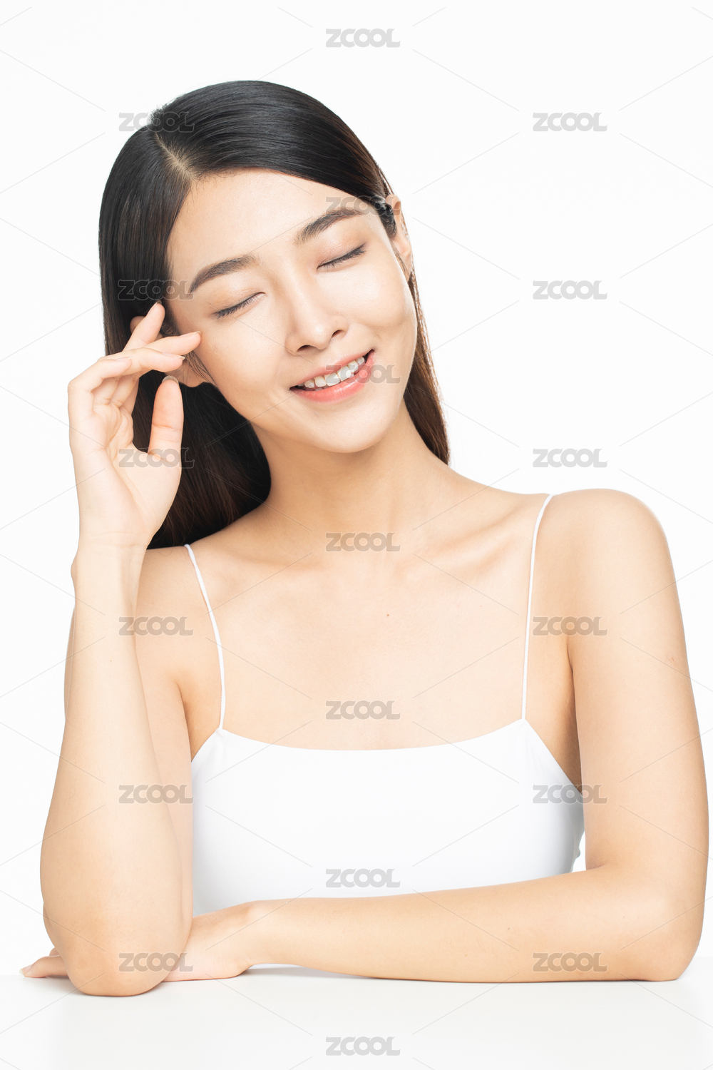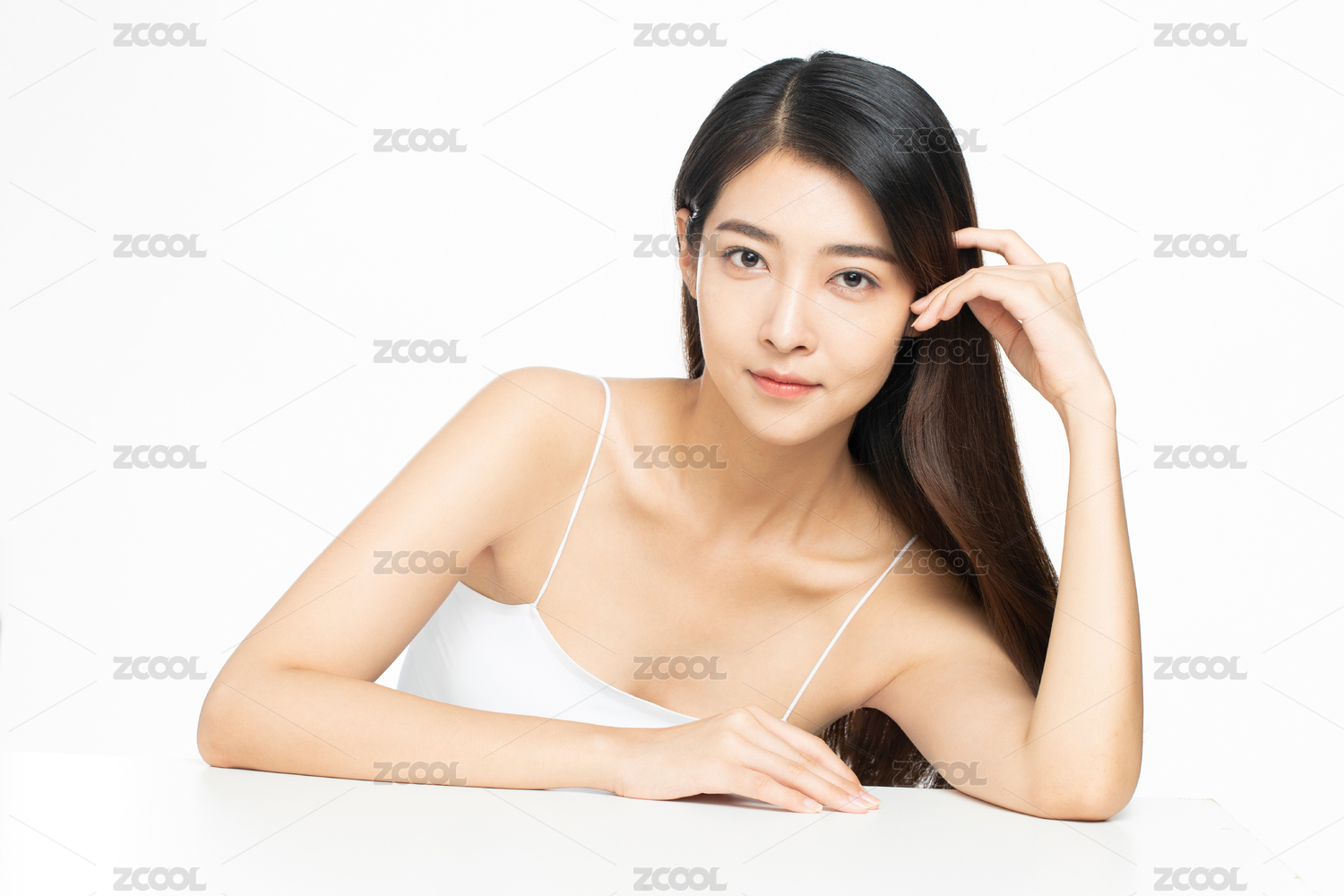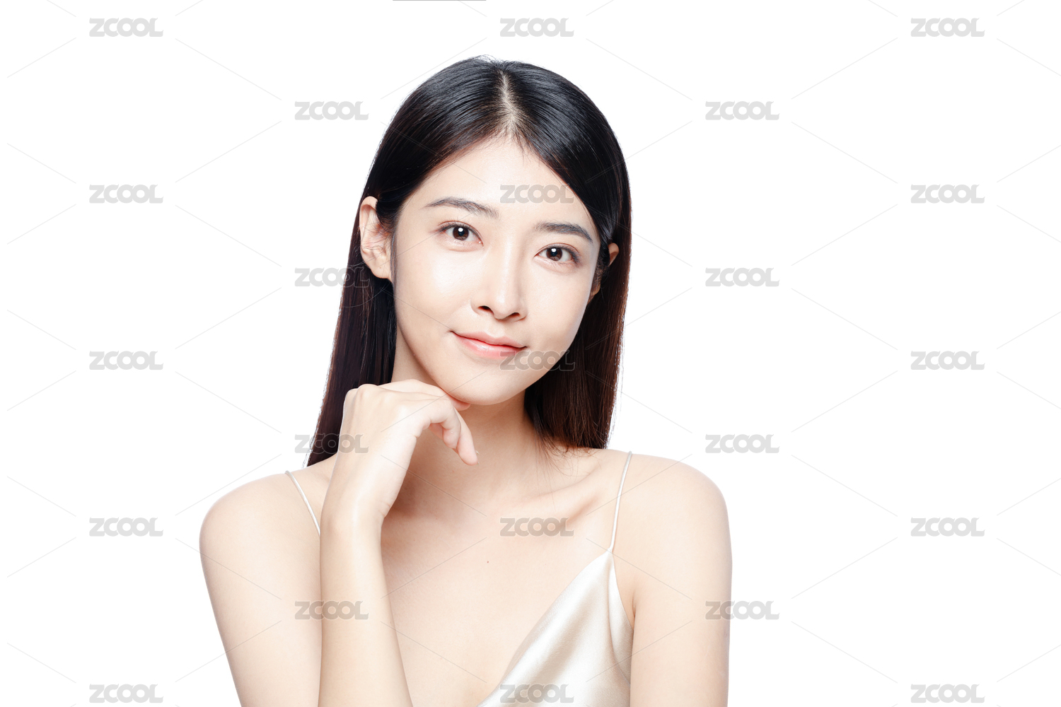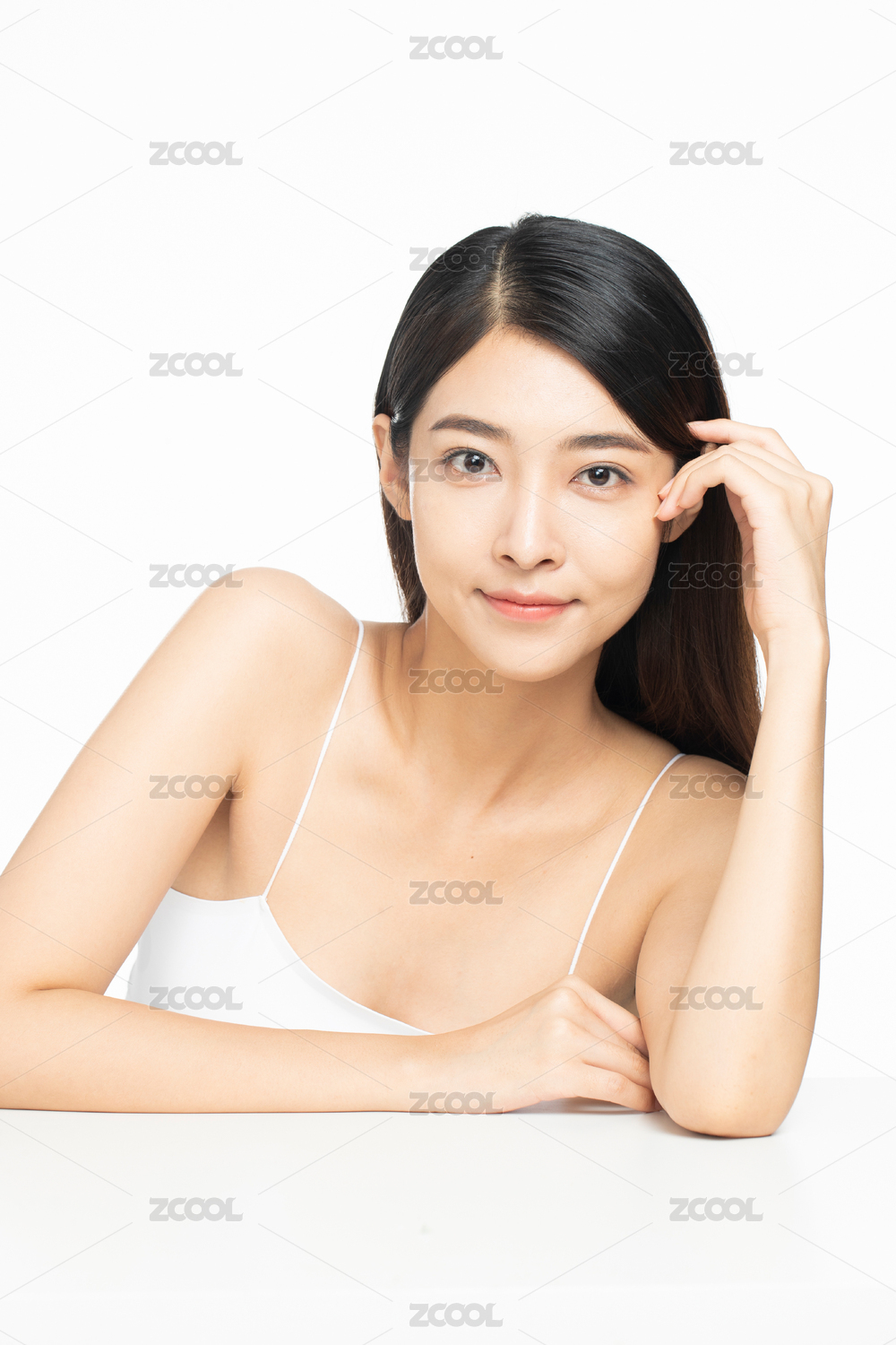 影棚拍摄年轻东方女性美容肖像