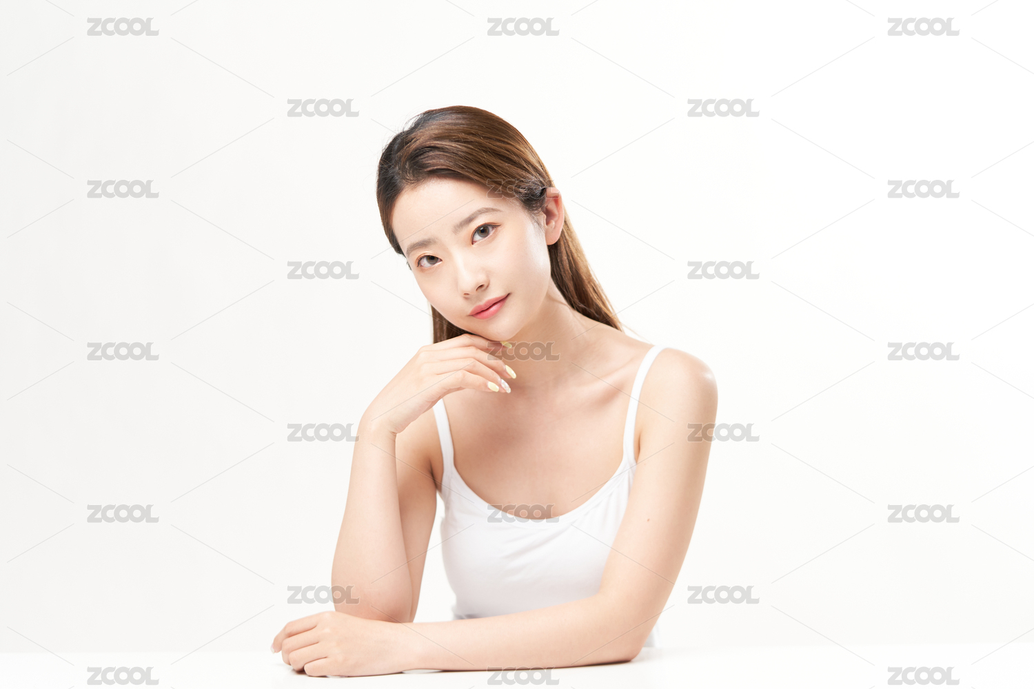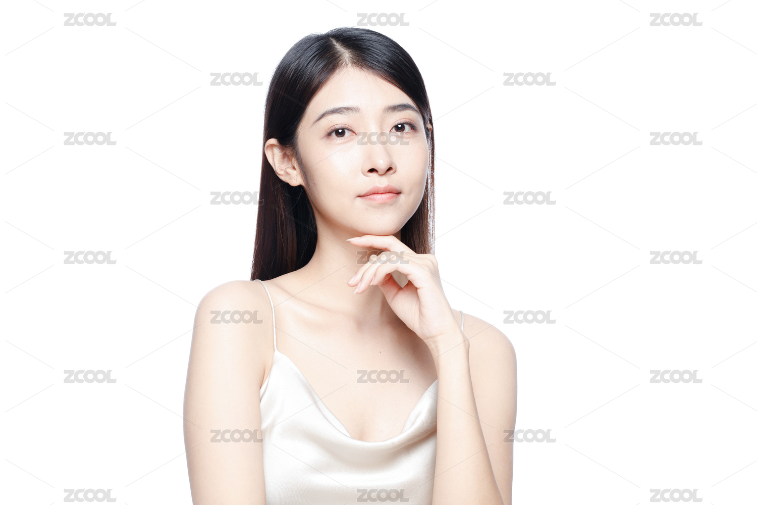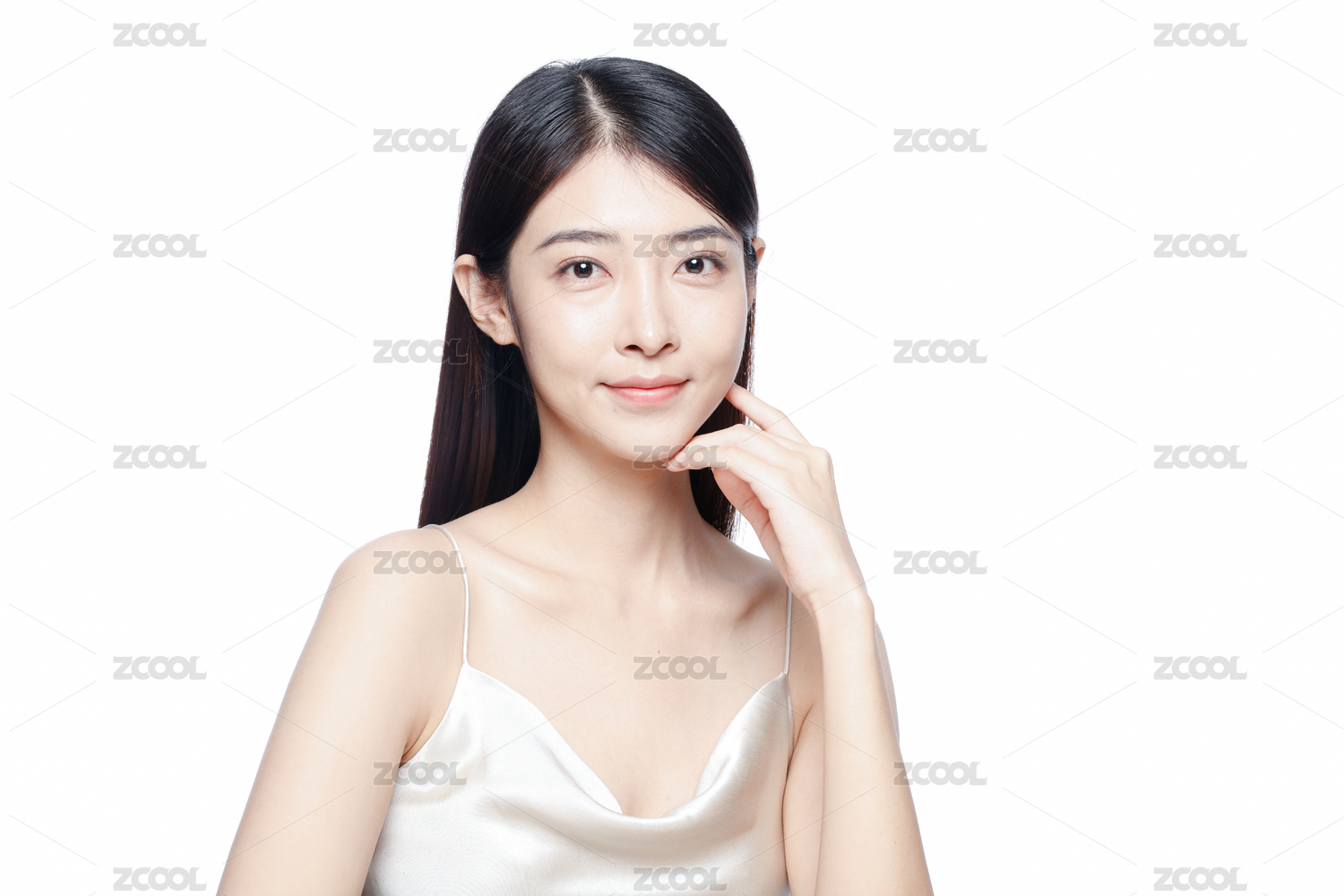 白色背景前一位亚洲裸妆美女